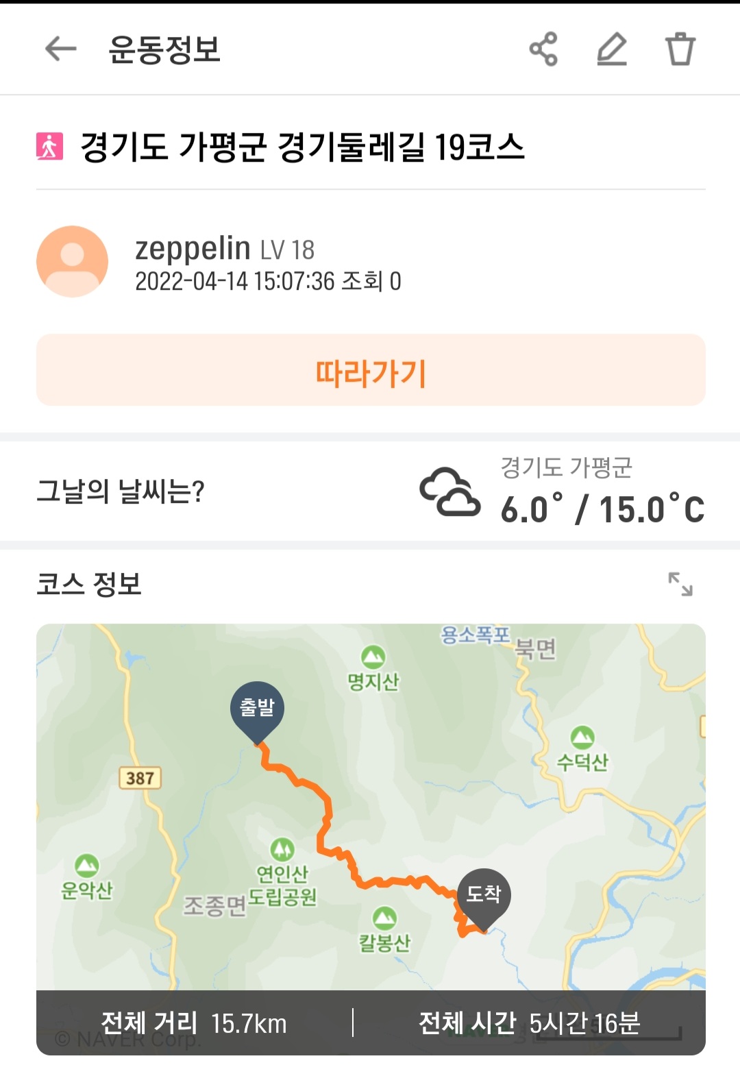 (18코스 가려고 했으나 버스가 가평에 계획된 시간보다 20분이 늦어질것 같아 19코스로 변경)