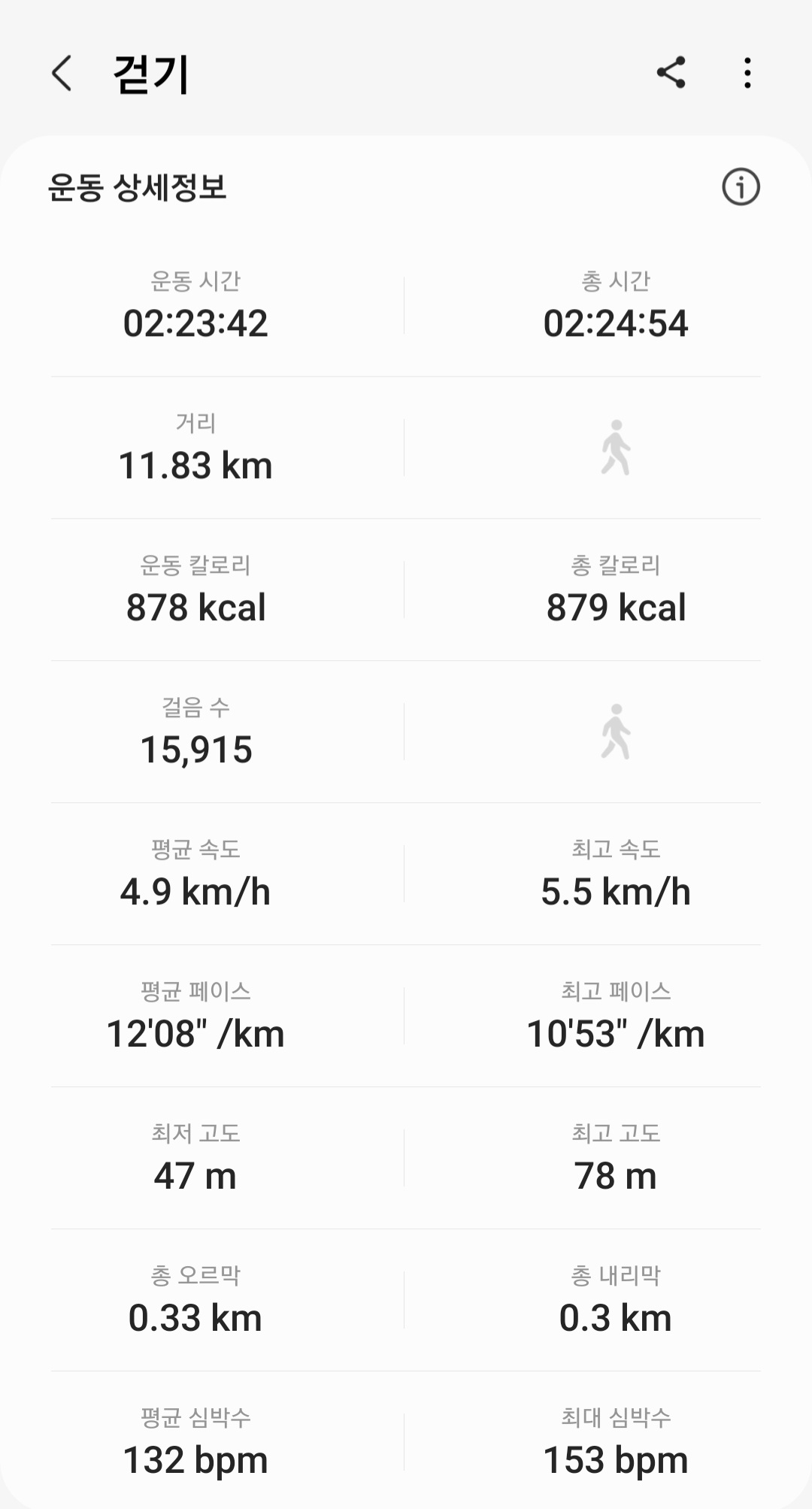▶ 실제 총거리 : 11.83km (갤럭시 워치4 기록)