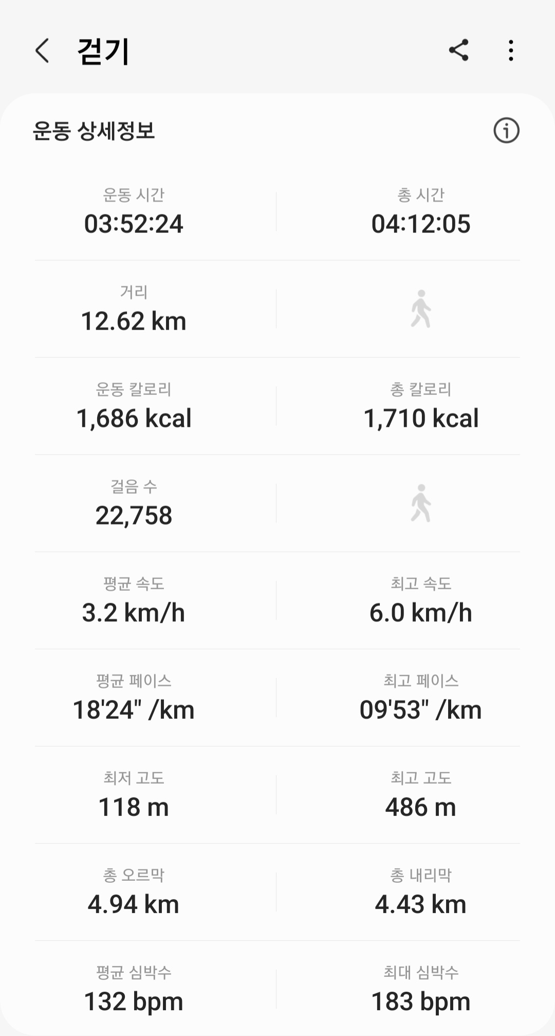 ▶ 실제 총거리 : 12.62km (갤럭시 워치4 기록)