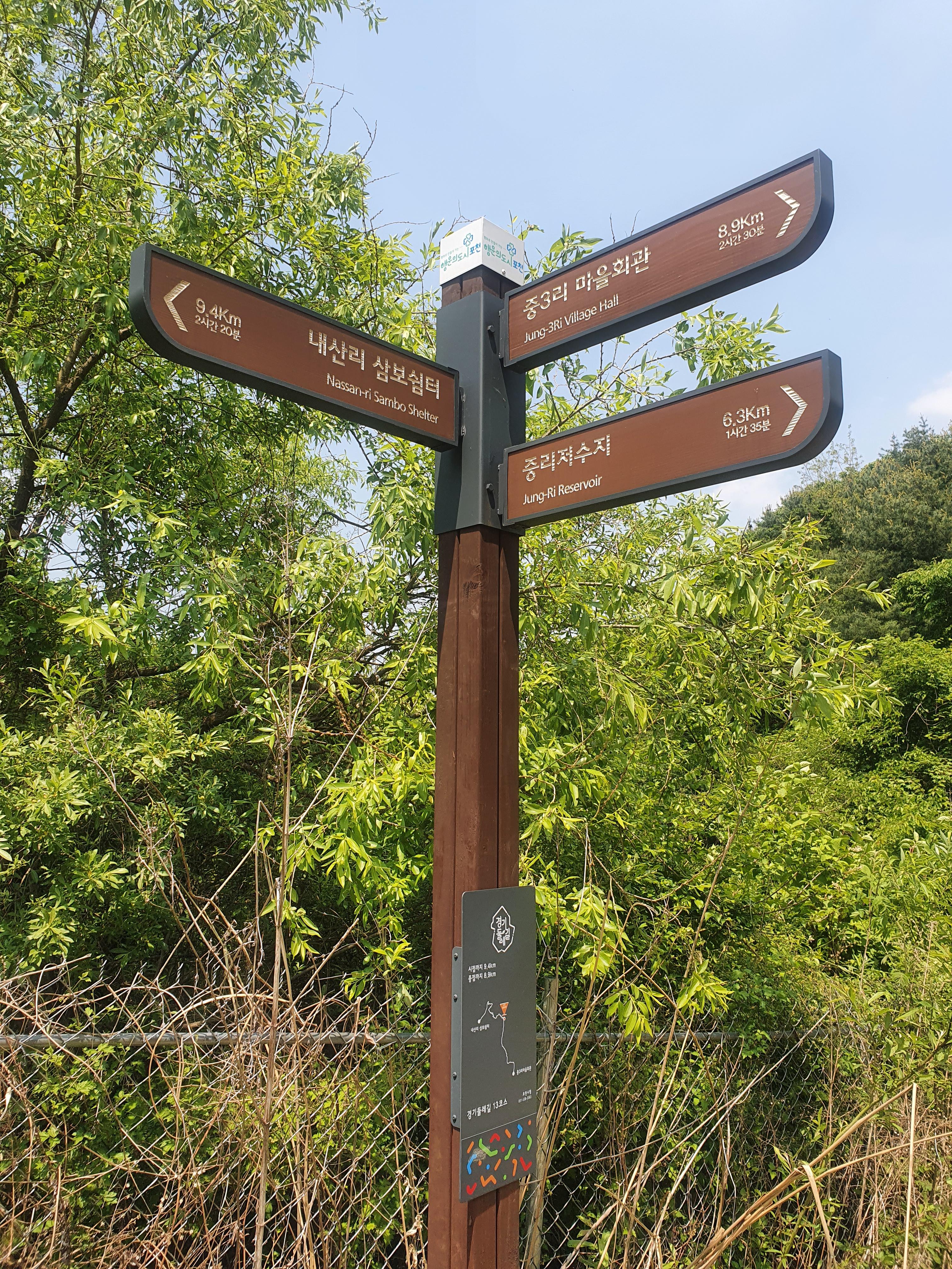 주요 코스 : 내산리 삼보쉼터 ~ 중리저수지 ~ 중리1교 ~ 중리3리 마을회관