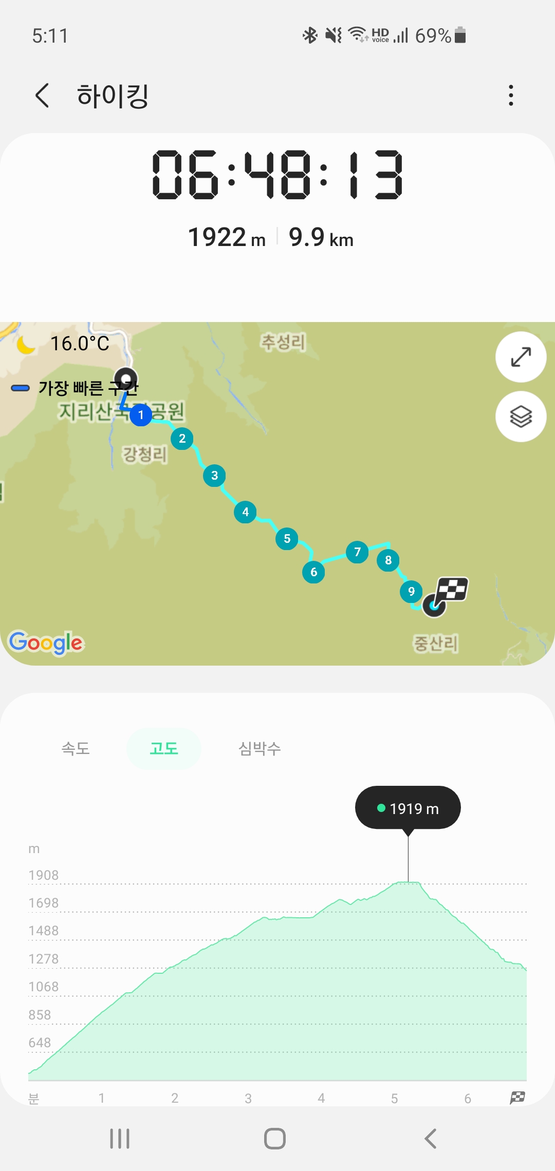 - 총 산행거리 약 13.83KM. 백무동~순두류법계사버스정류장까지.