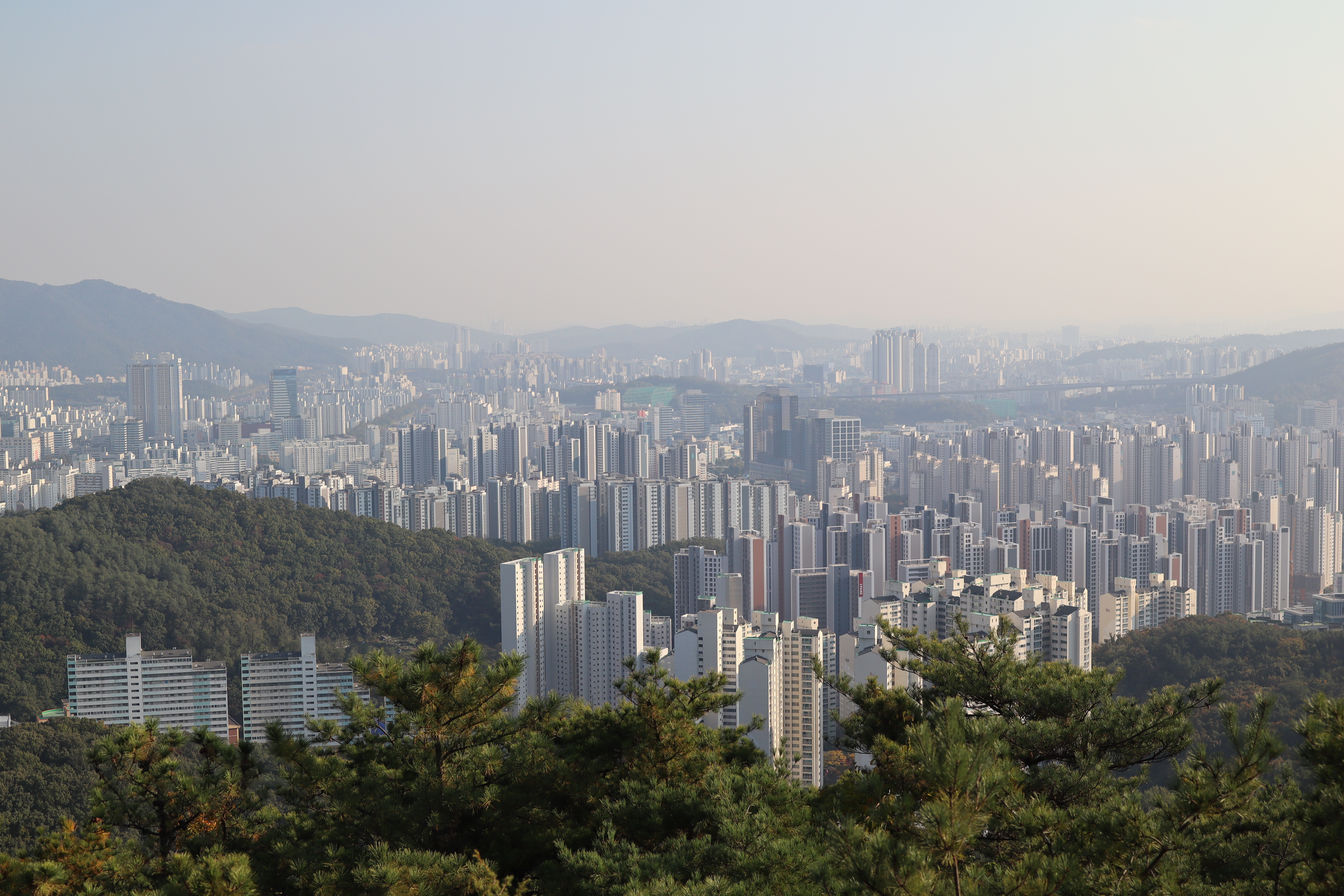 우측에 보이는 다리 - 양명교 망해암 멀리 보이는 수리산 비봉산 연주대, 기상관측소 비봉산 전망대 - 잘 안 보이지만 서해바다! 삼성산