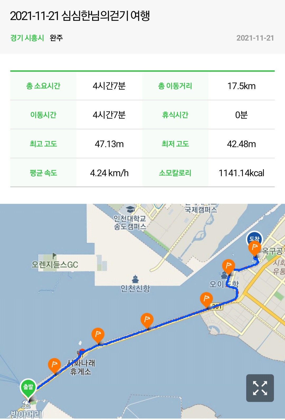 (배곧한울공원 스탬프 위치 찾느라 30분정도 더 소요됨)