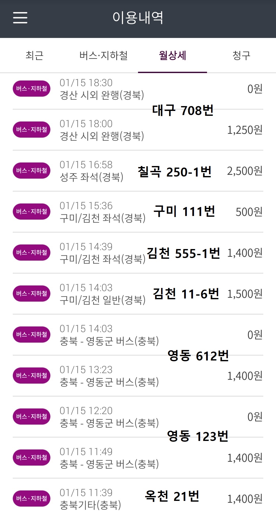 ▶ 버스 총요금 : 11,350원 (티머니 이용 기록)