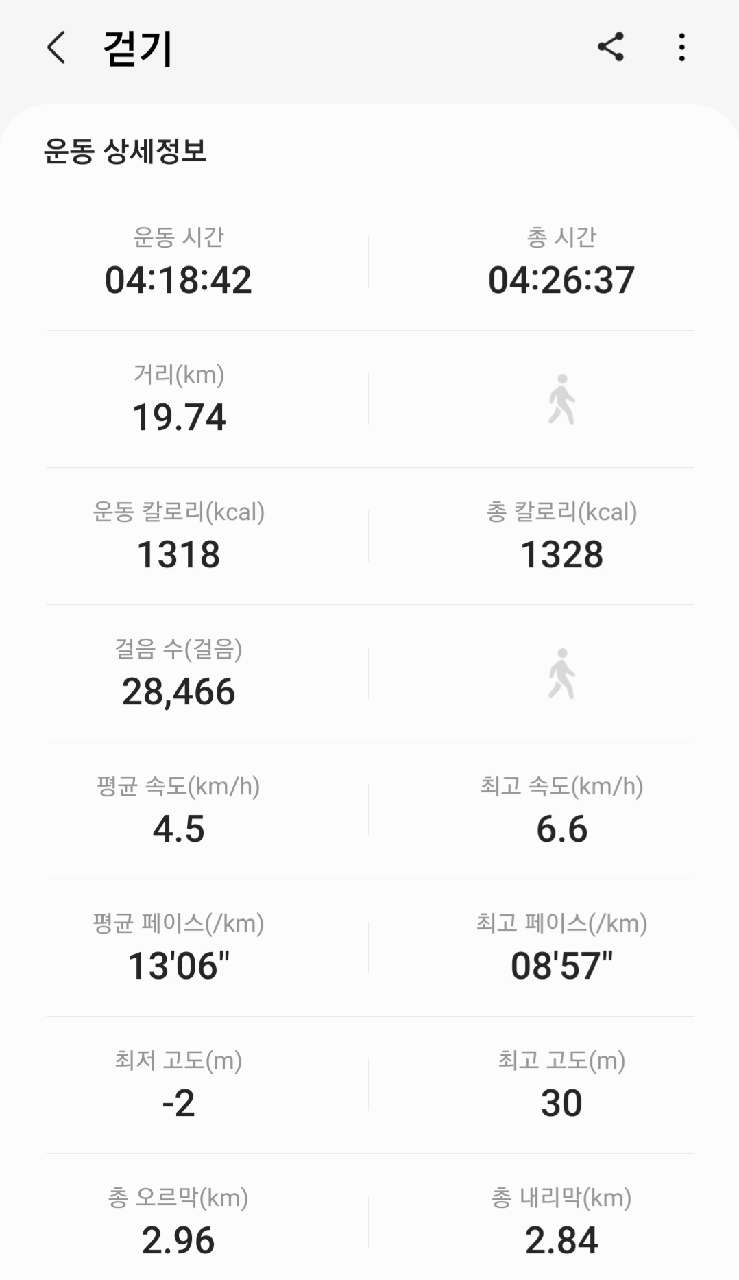 실제 총거리 : 19.74km (갤럭시 워치4 기록)