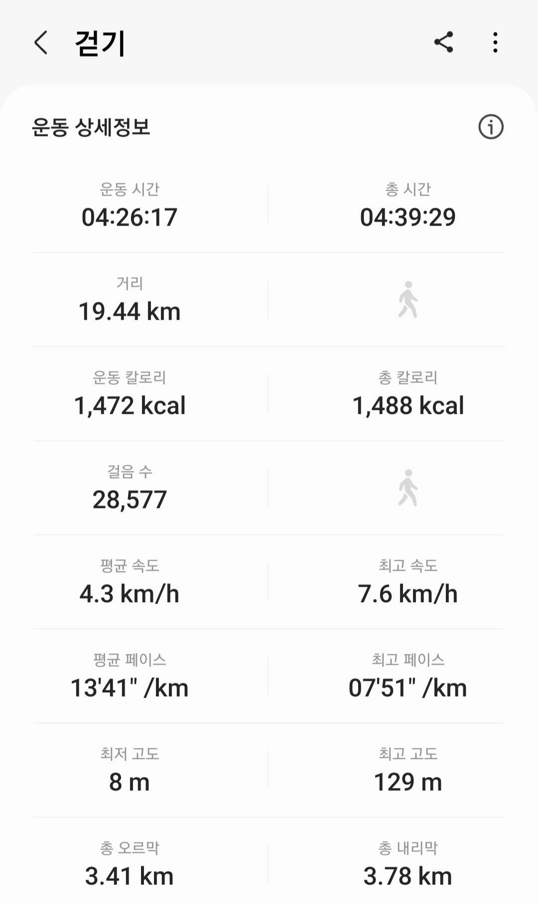 ▶ 실제 총거리 : 19.44km (갤럭시 워치4 기록)