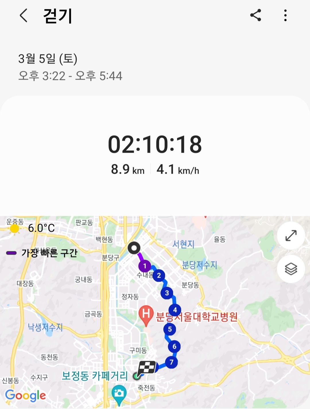 ▶ 실제 총거리 : 8.9km (갤럭시 워치4 기록)