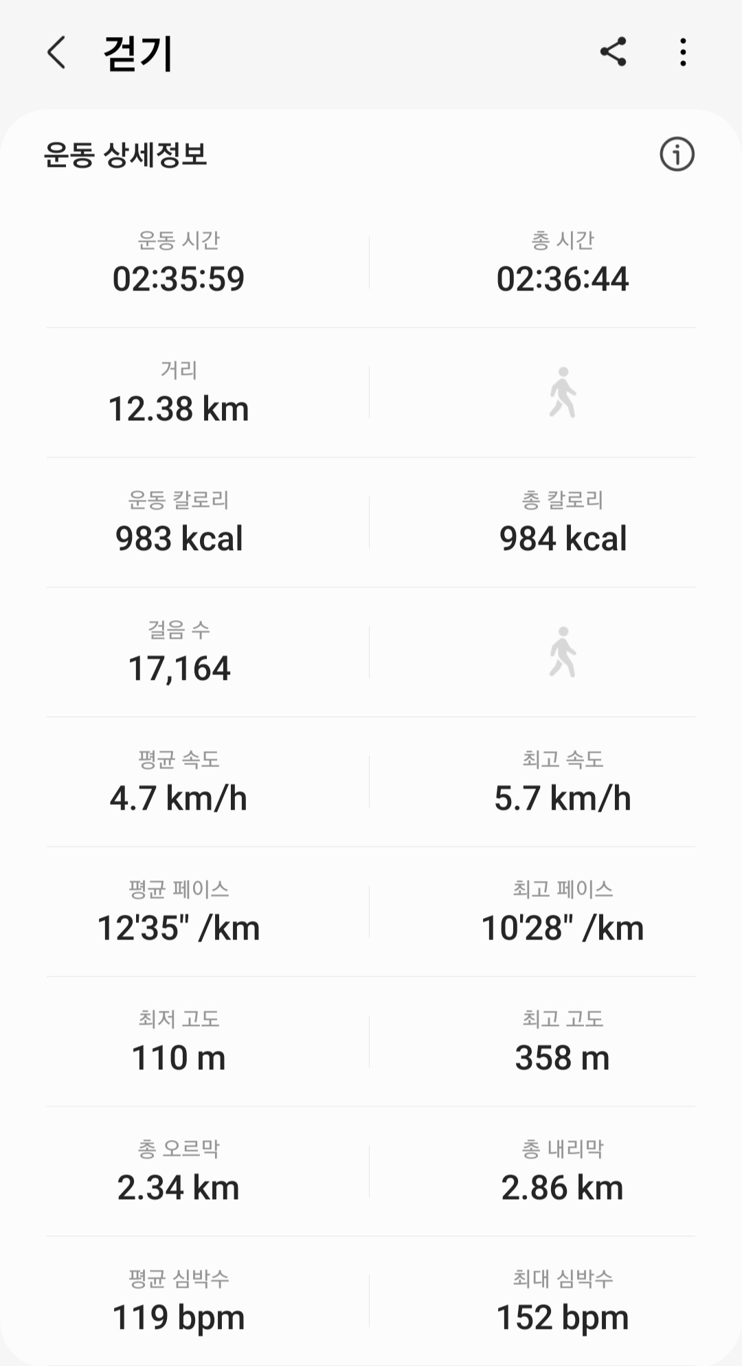 ▶ 실제 총거리 : 12.38km (갤럭시 워치4 기록)