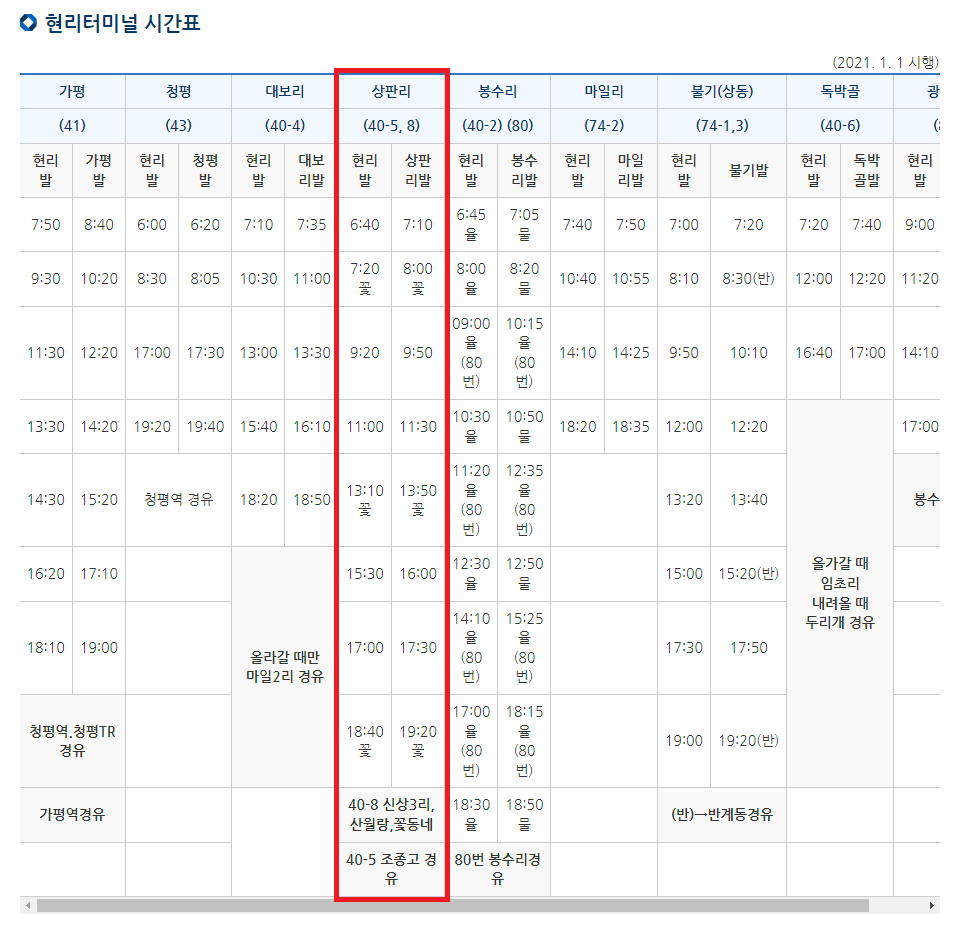(가평터미널행 71-4번 시간표 참조)