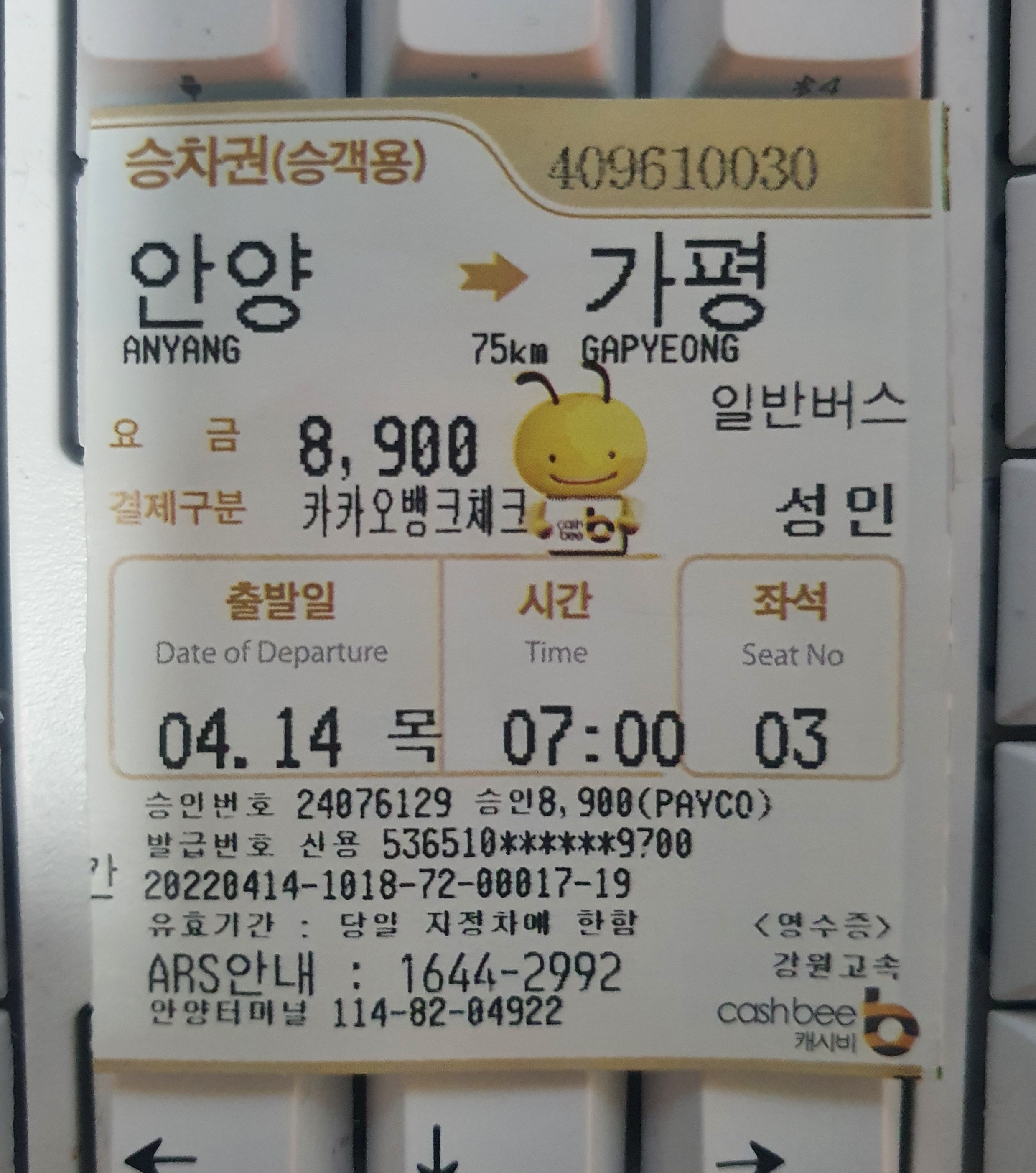 - 갈때 : 버스 이용 시간 2시간 32분 (안양시외버스터미널 승차 07시10분 ~ 보아귀골 하차 09시47분)