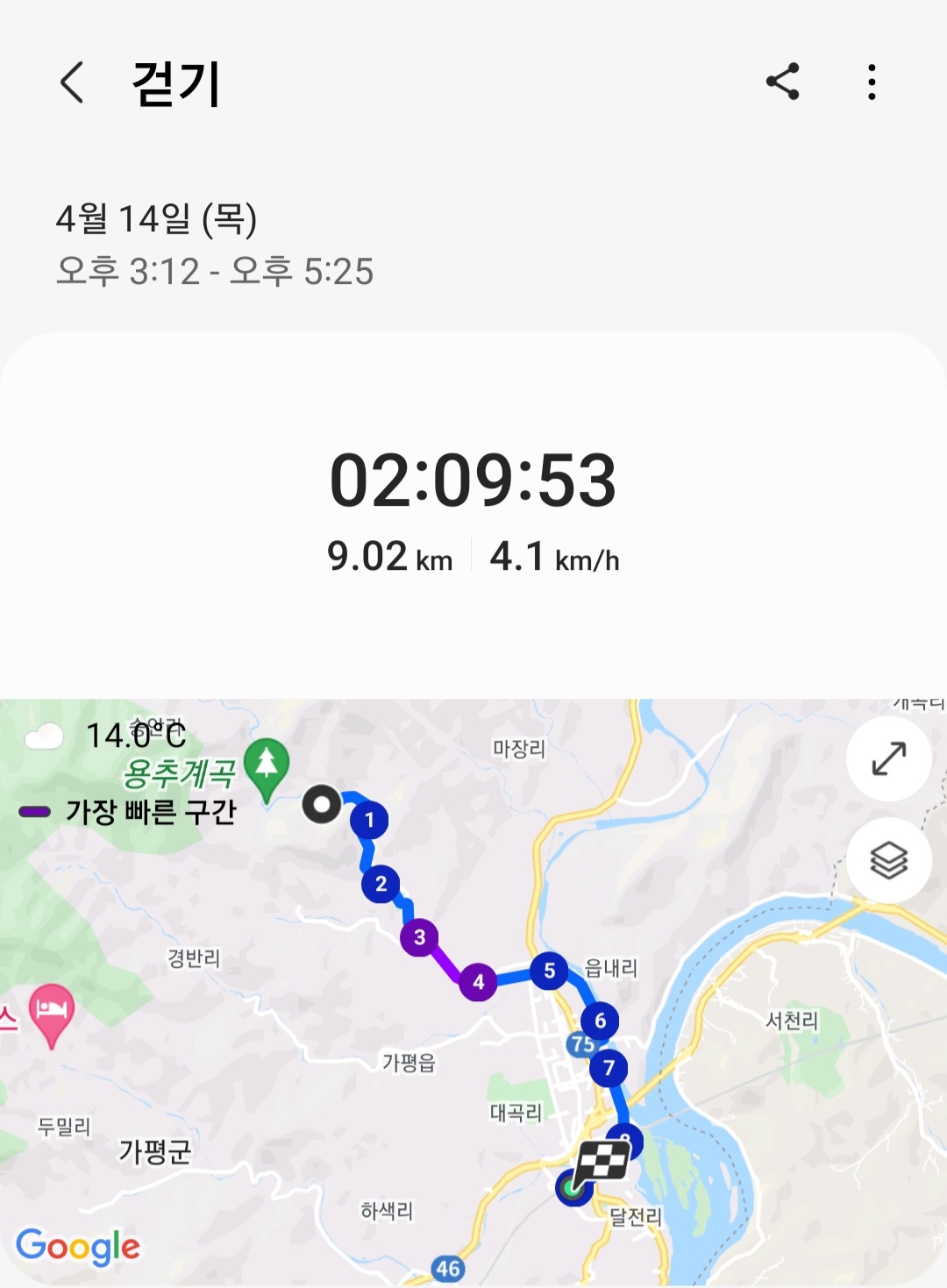 ▶ 실제 총거리 : 9.02km (갤럭시 워치4 기록)