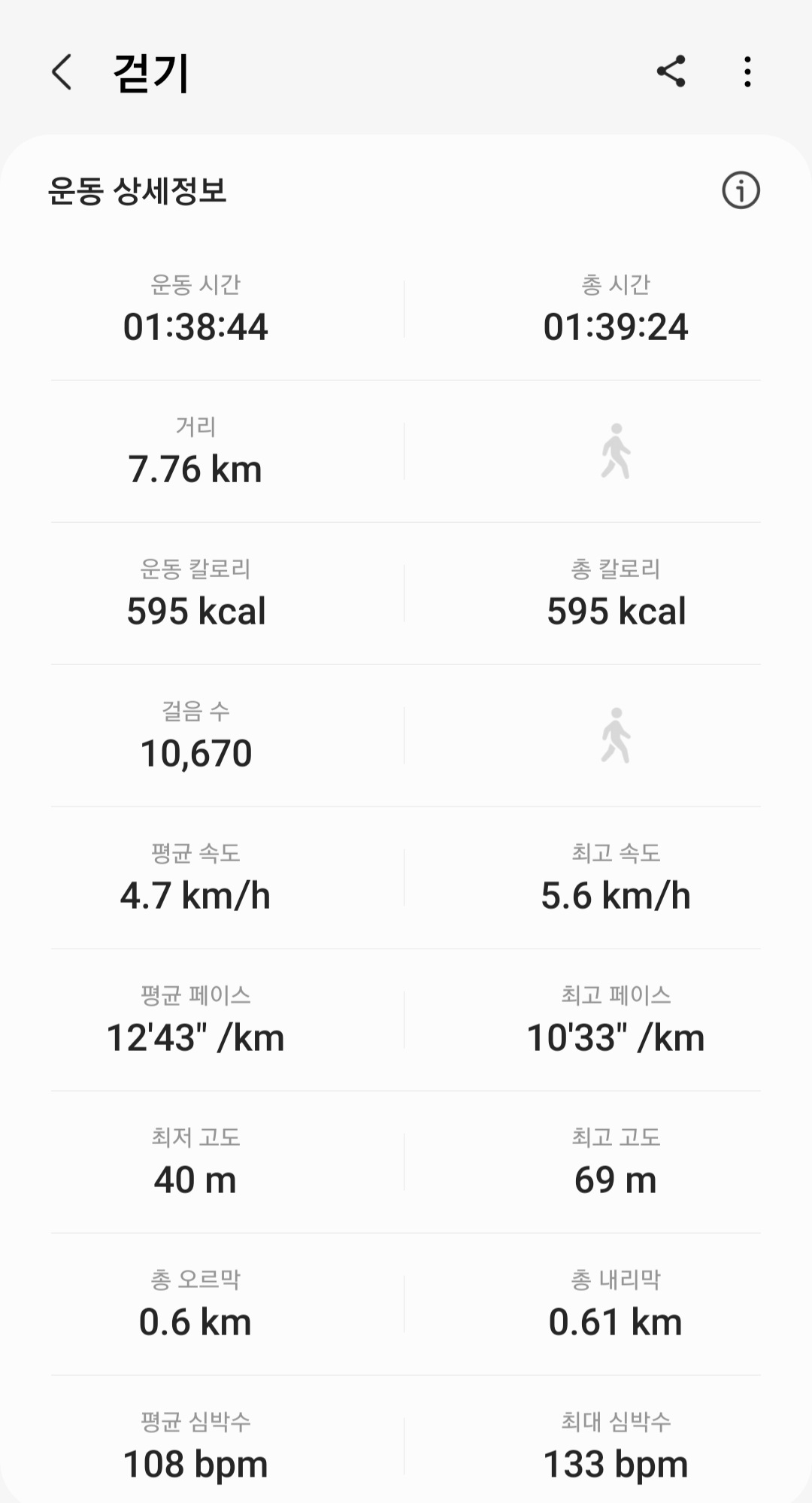 ▶ 실제 총거리 : 7.76km (갤럭시 워치4 기록)