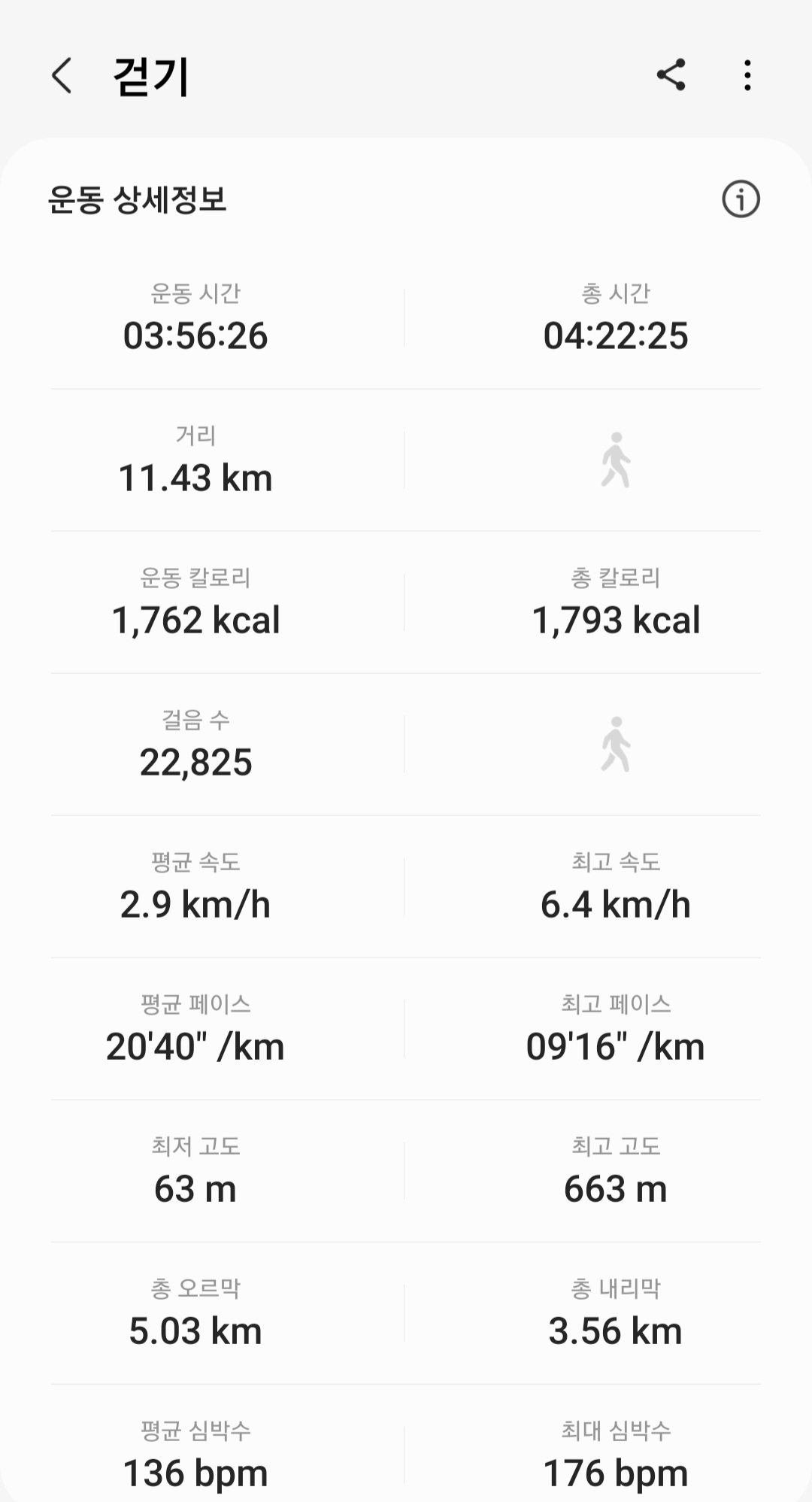 ▶ 실제 총거리 : 11.43km (갤럭시 워치4 기록)