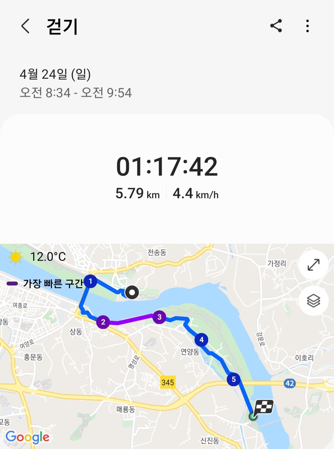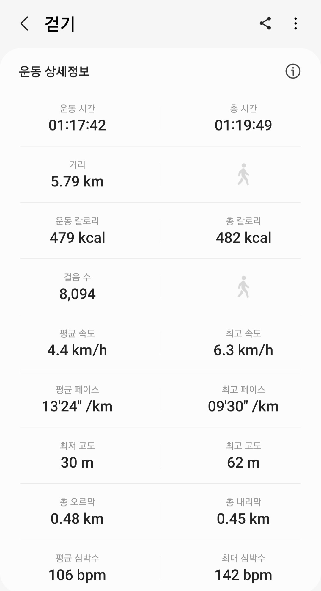 ▶ 실제 총거리 : 5.79km (갤럭시 워치4 기록)