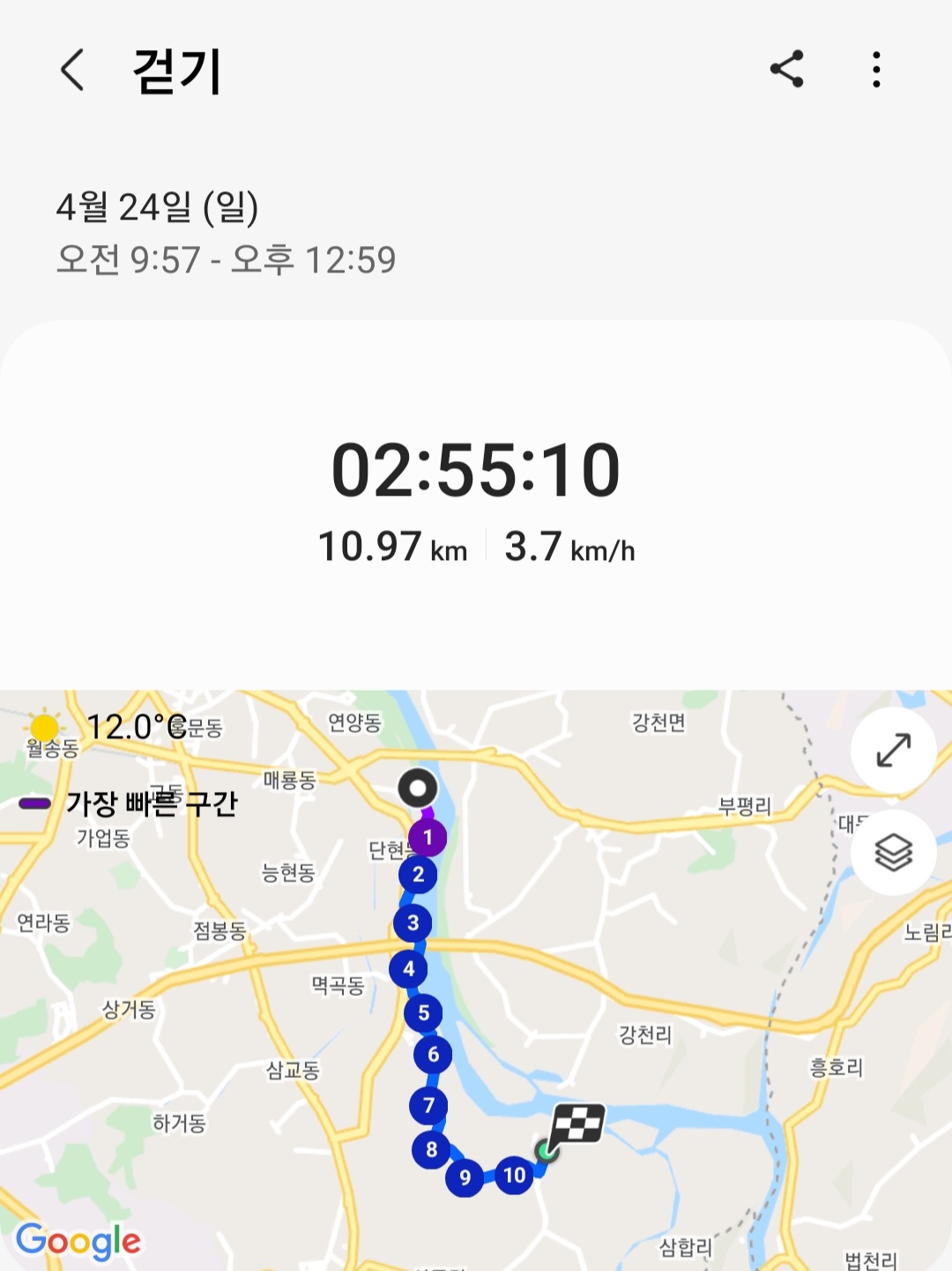 ▶ 실제 총거리 : 10.97km (갤럭시 워치4 기록)