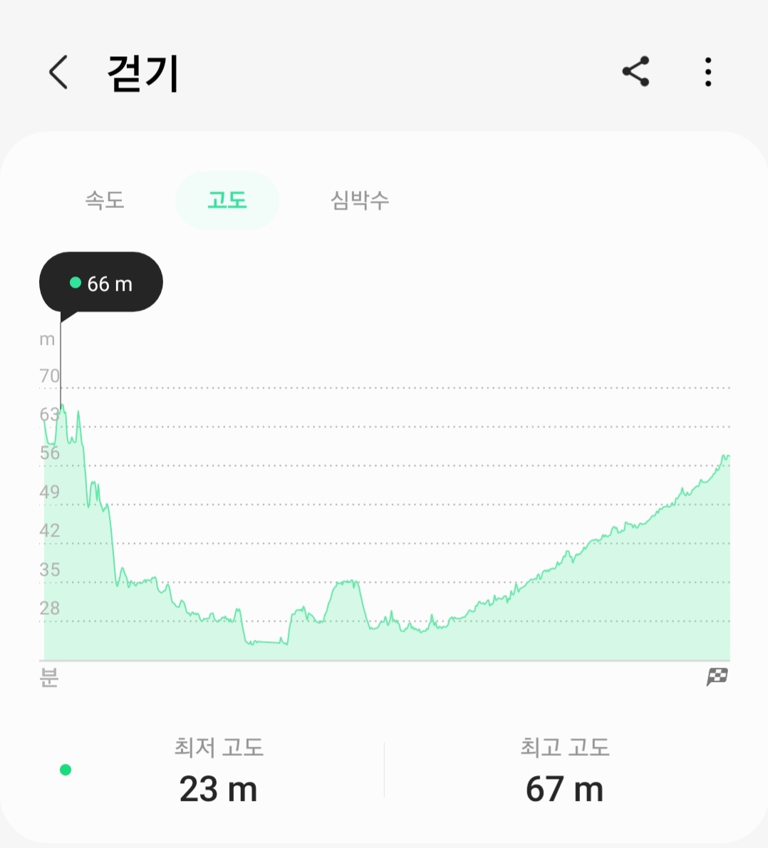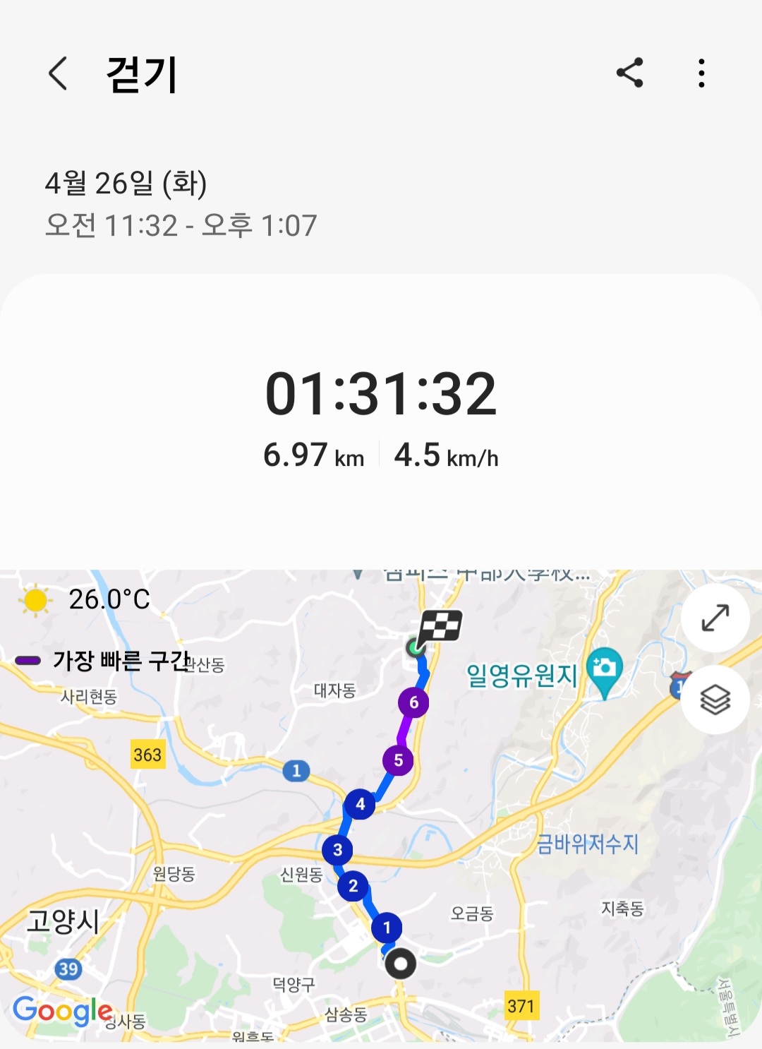 ▶ 실제 총거리 : 6.97km (갤럭시 워치4 기록-시작 약 1km이후부터 측정-오류)
