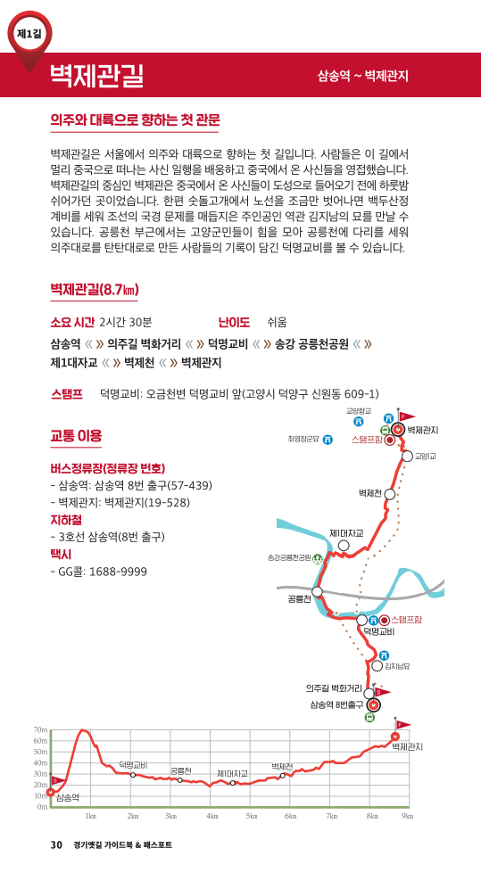 ▶ 주요 코스 : 삼송역 ~ 의주길 벽화거리 ~ 덕명교비 ~ 송강 공릉천 ~ 제1대자교 ~ 벽제천 ~ 벽제관지