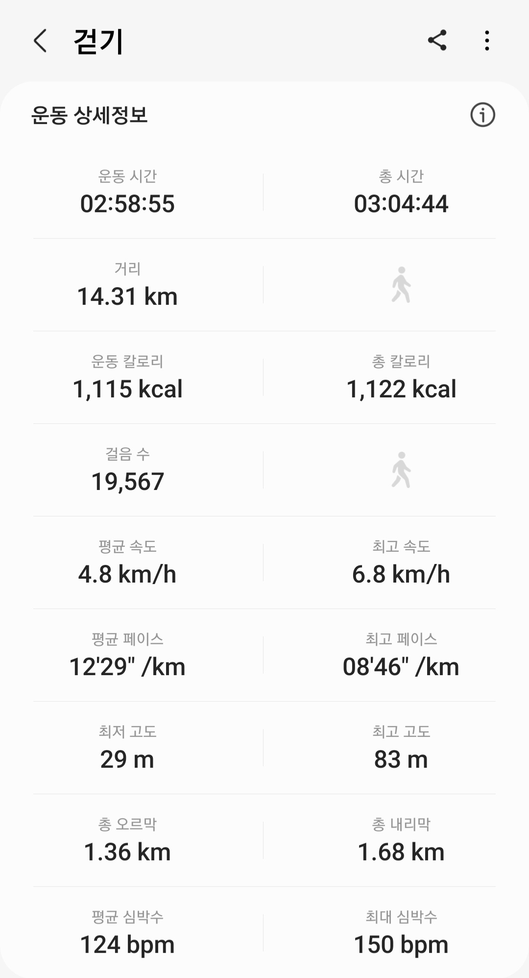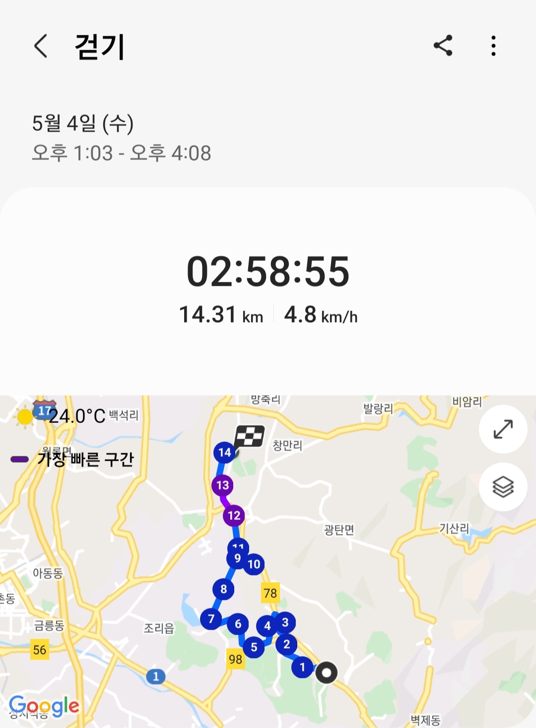 ▶ 실제 총거리 : 14.31km (갤럭시 워치4 기록)