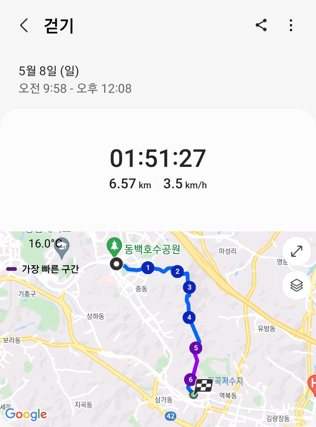 ▶ 실제 총거리 : 6.57km (갤럭시 워치4 기록)