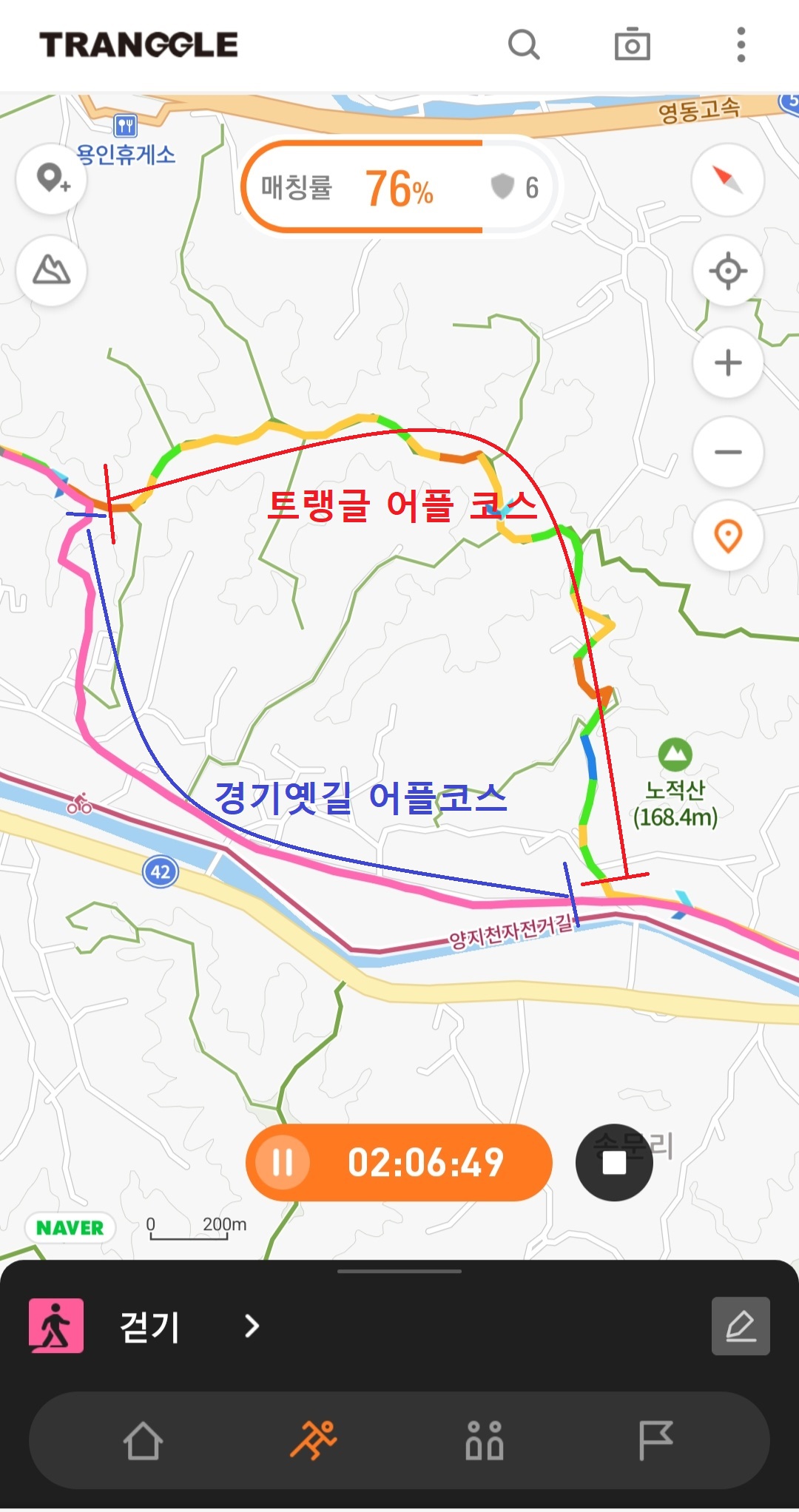 단 트랭글 어플 영남길 5길 스탬프 획득은 안됨. 코스 매칭 79%로...(80% 되어야 스탬프 획득)