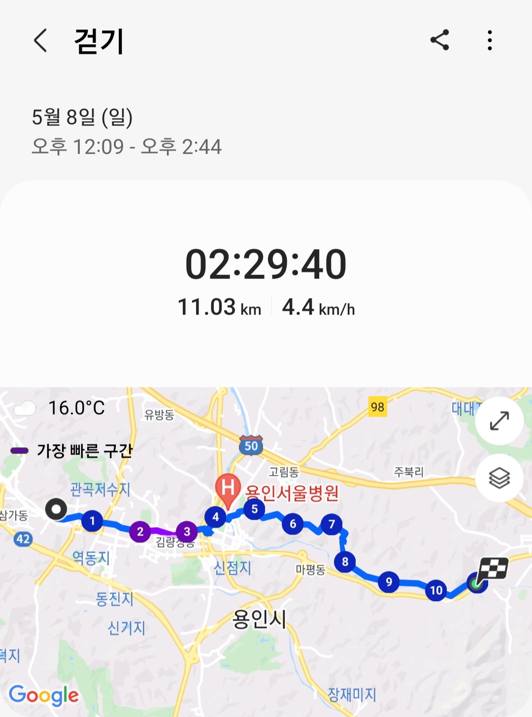 ▶ 실제 총거리 : 11.03km (갤럭시 워치4 기록)