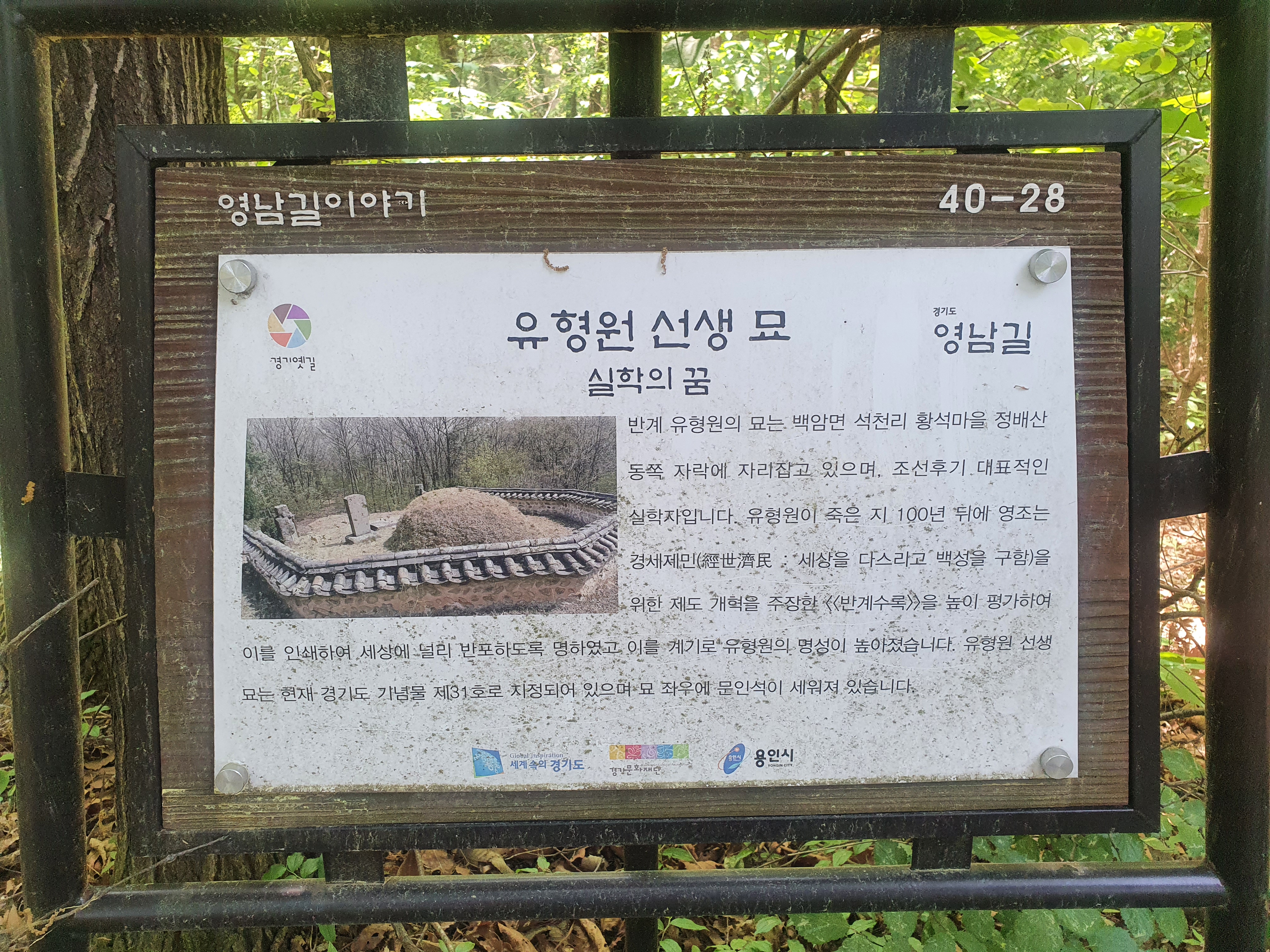 구봉산길 정배산 동쪽에는 경기도기념물 제31호인 유형원 선생 묘가 있다. 반계 유형원은 조선후기 대표적인 실학자로 『반계수록』이 대표적인 저서이다. 이 책은 농촌 생활에서 체험과 농촌 경제의 안정책 등을 제시한 경세제민의 책이다. 이 외에도 성리학 관련 『주자찬요(朱子纂要)』, 지리서인 『여지지(輿地志)』, 역사서인 『동국사강목조례(東國史綱目條例)』 등을 남겼다. 특히 『반계수록』의 경우 영조가 경세제민(經世濟民 : 세상을 다스리고 백성을 구함)을 위한 제도 개혁인 『반계수록』을 높이 평가하여 이를 인쇄하여 세상에 널리 반포하도록 명하였고 이를 계기로 유형원의 명성이 높아졌다.