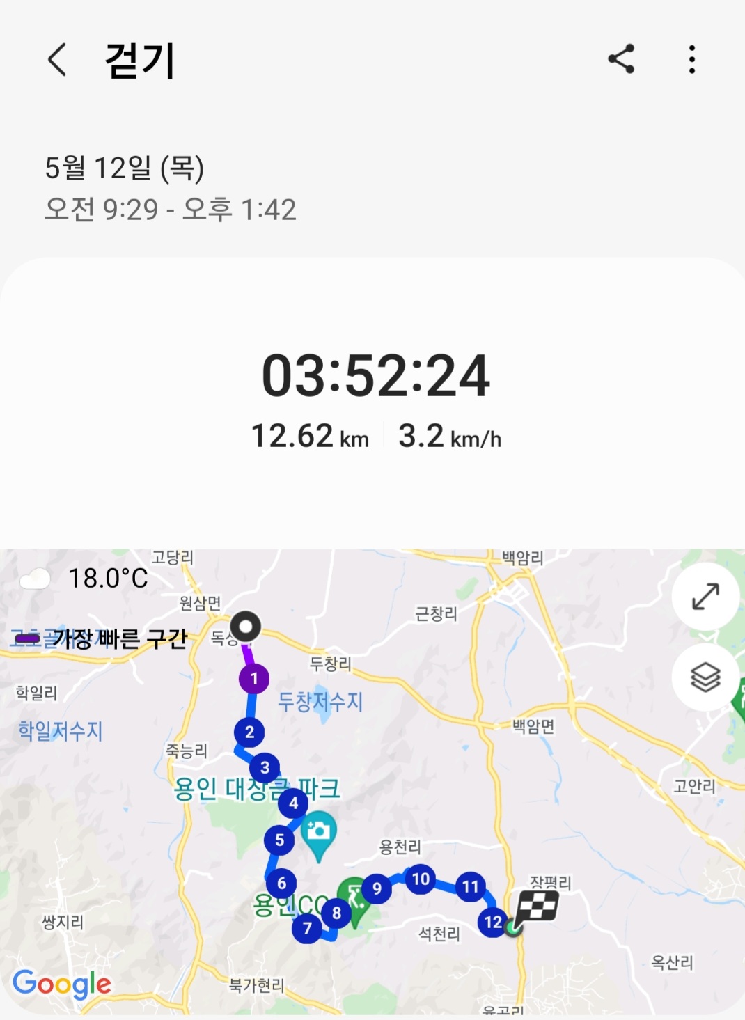 ▶ 실제 총거리 : 12.62km (갤럭시 워치4 기록)