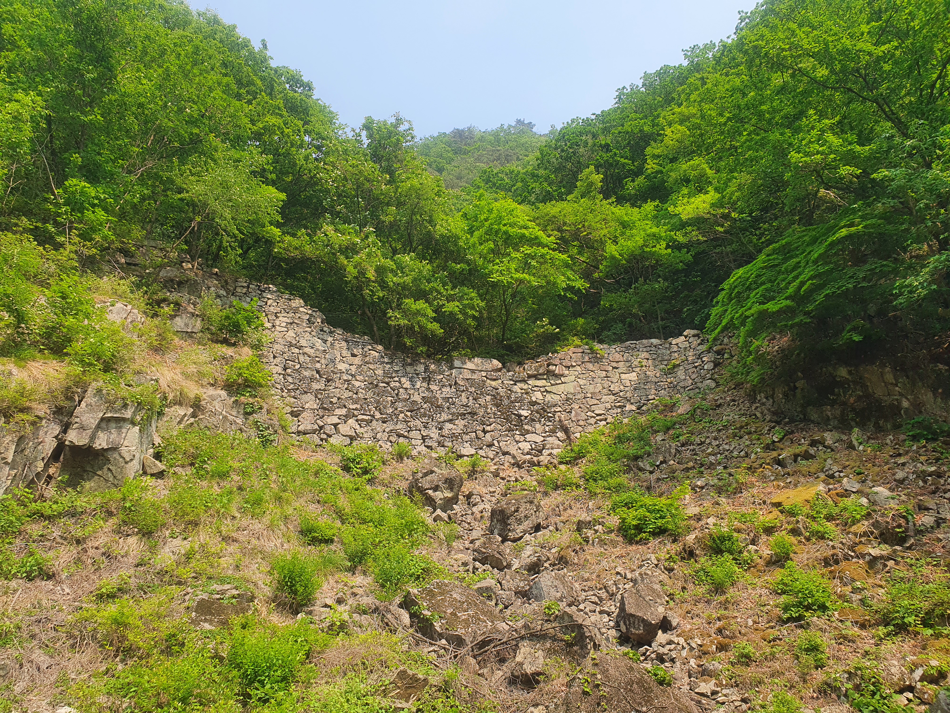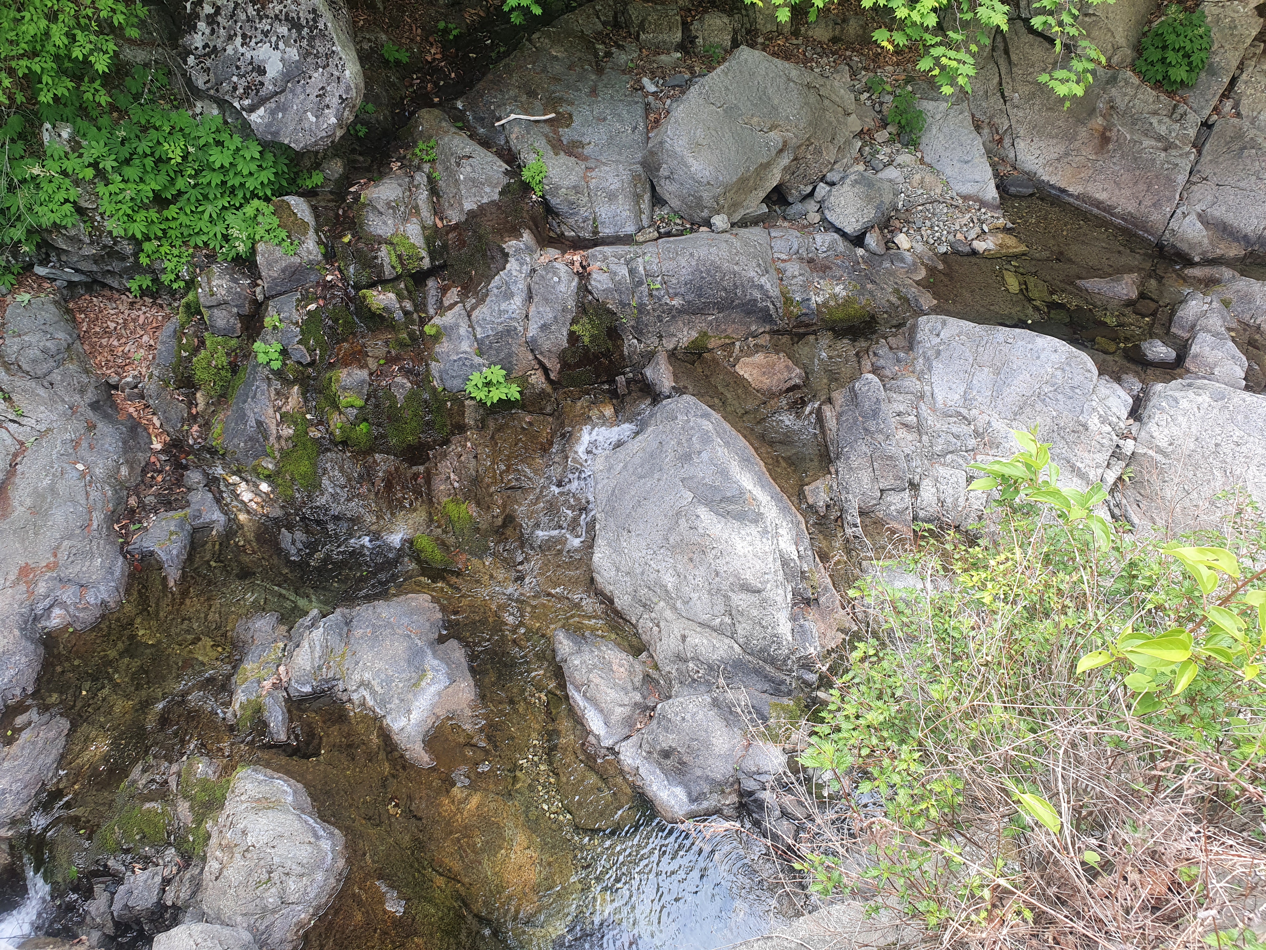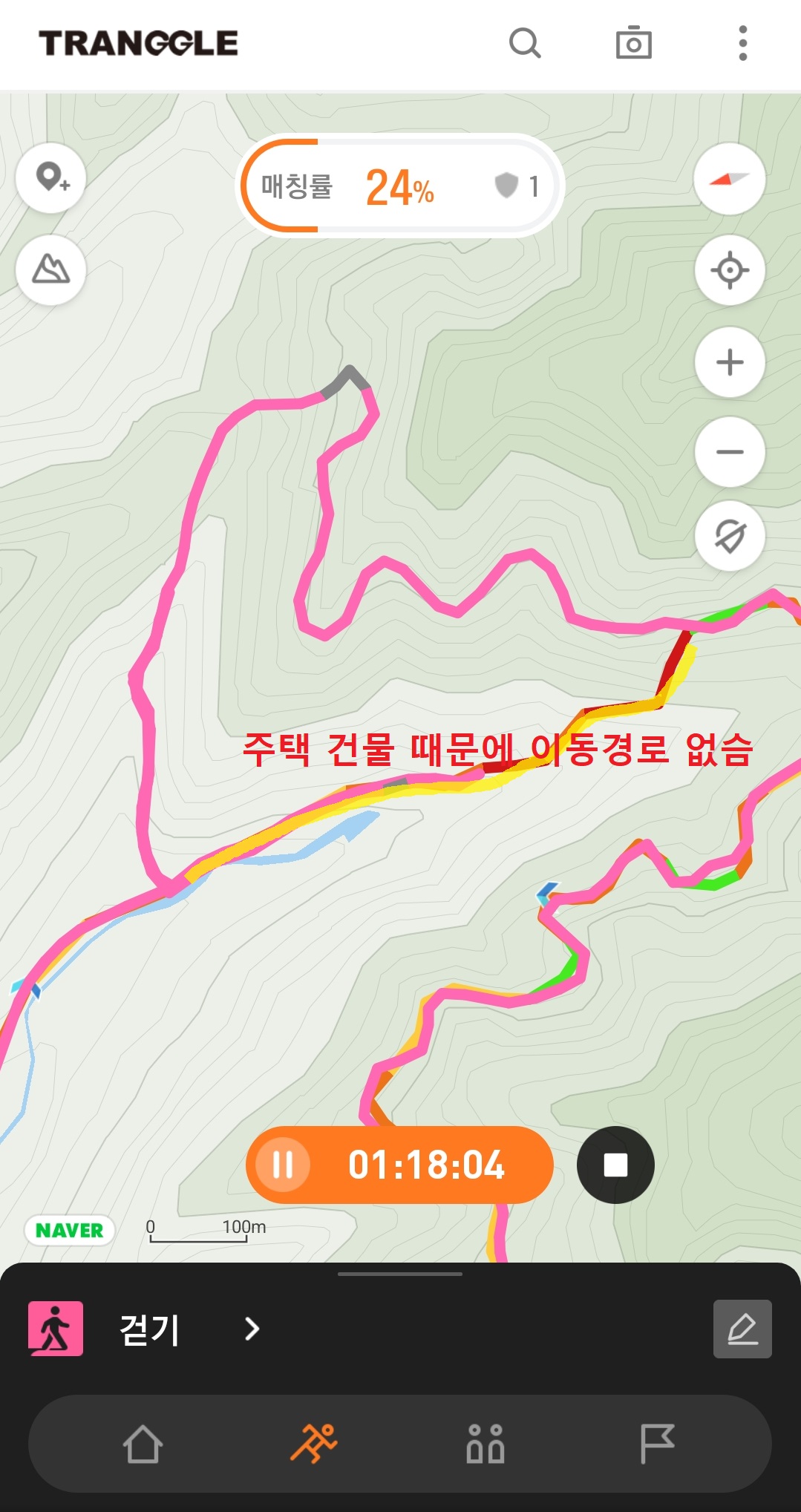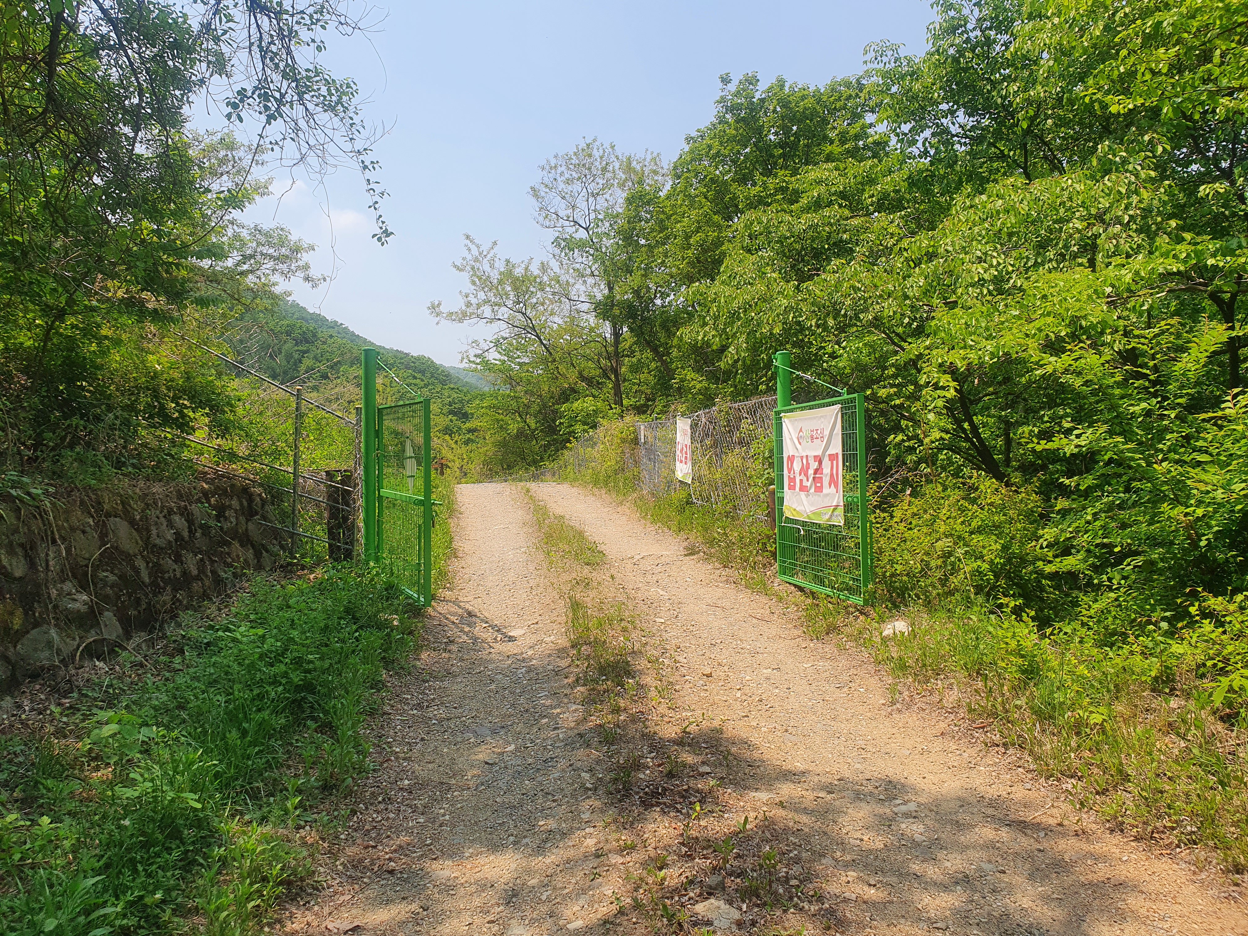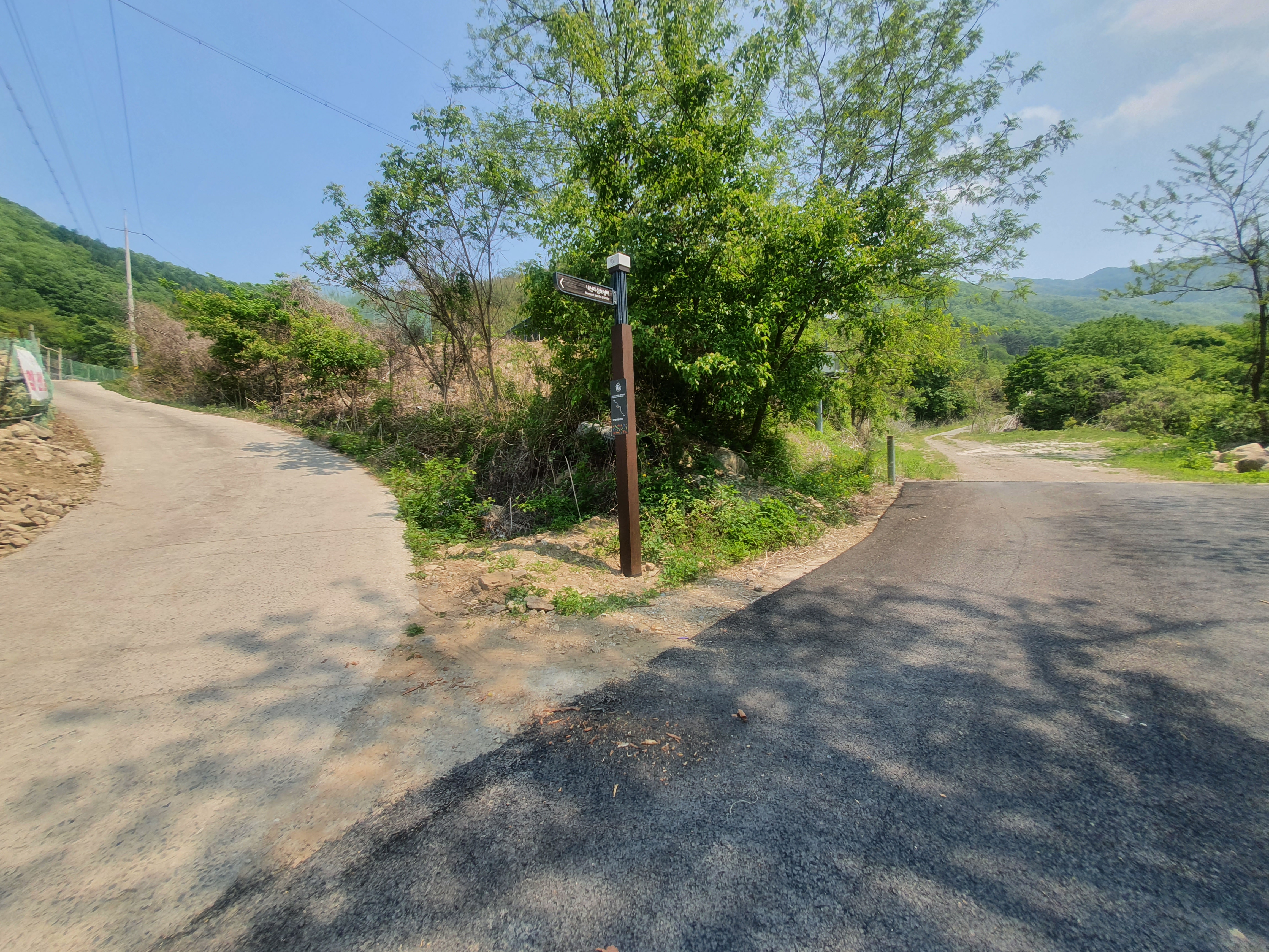 시작위치부터 약 1.6km 지점 갈림길에서 원래 우측으로 이동해야 하나 (올라가면 집만 있고) 길이 없슴.