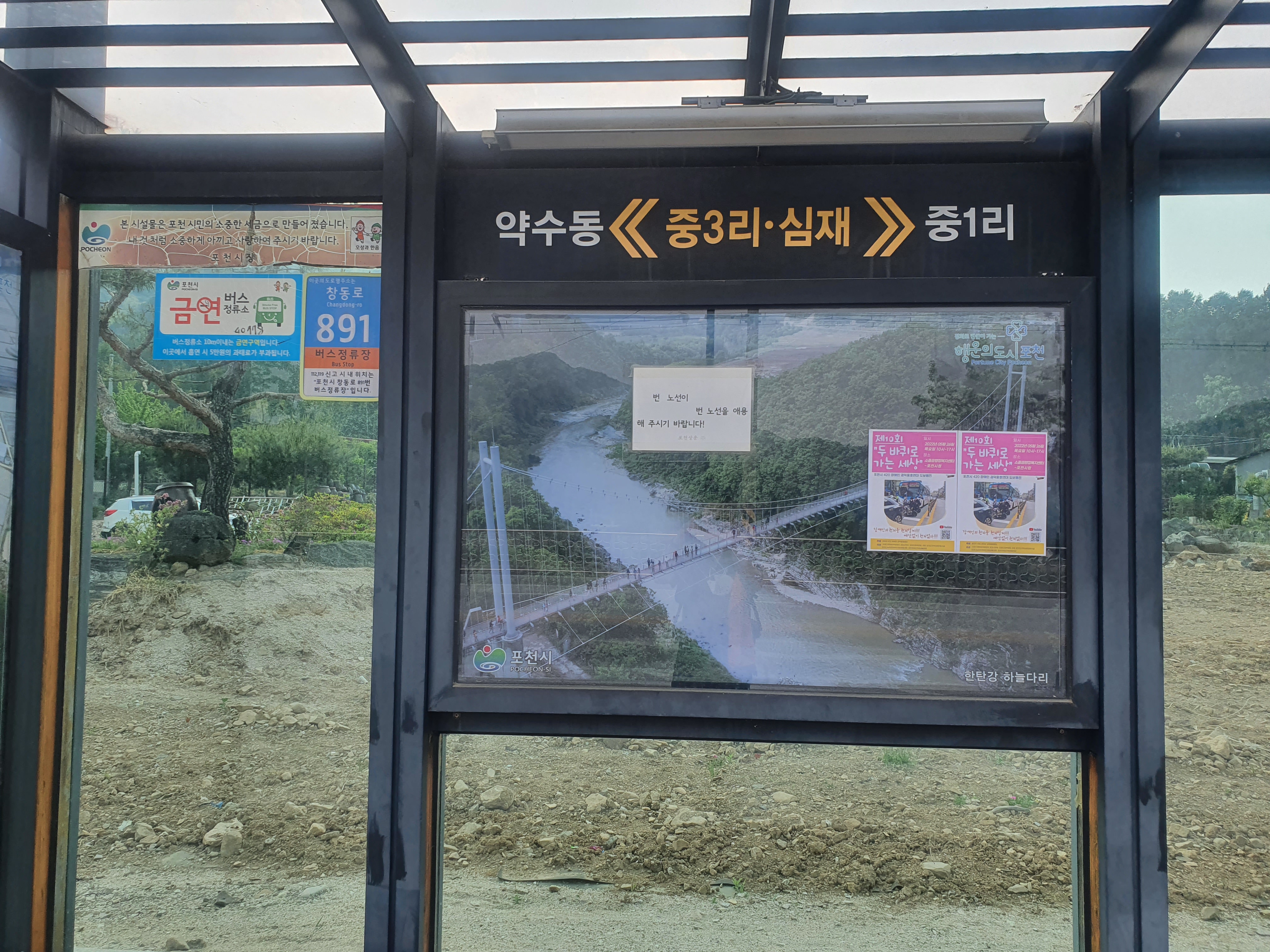 중3리(관인15:30발) 60-1 승차(15:45~16:34) > 포천시청 3006 환승(16:39~17:45) > 잠실역 1650 환승(17:59) > 안양1번가 하차(19:22)