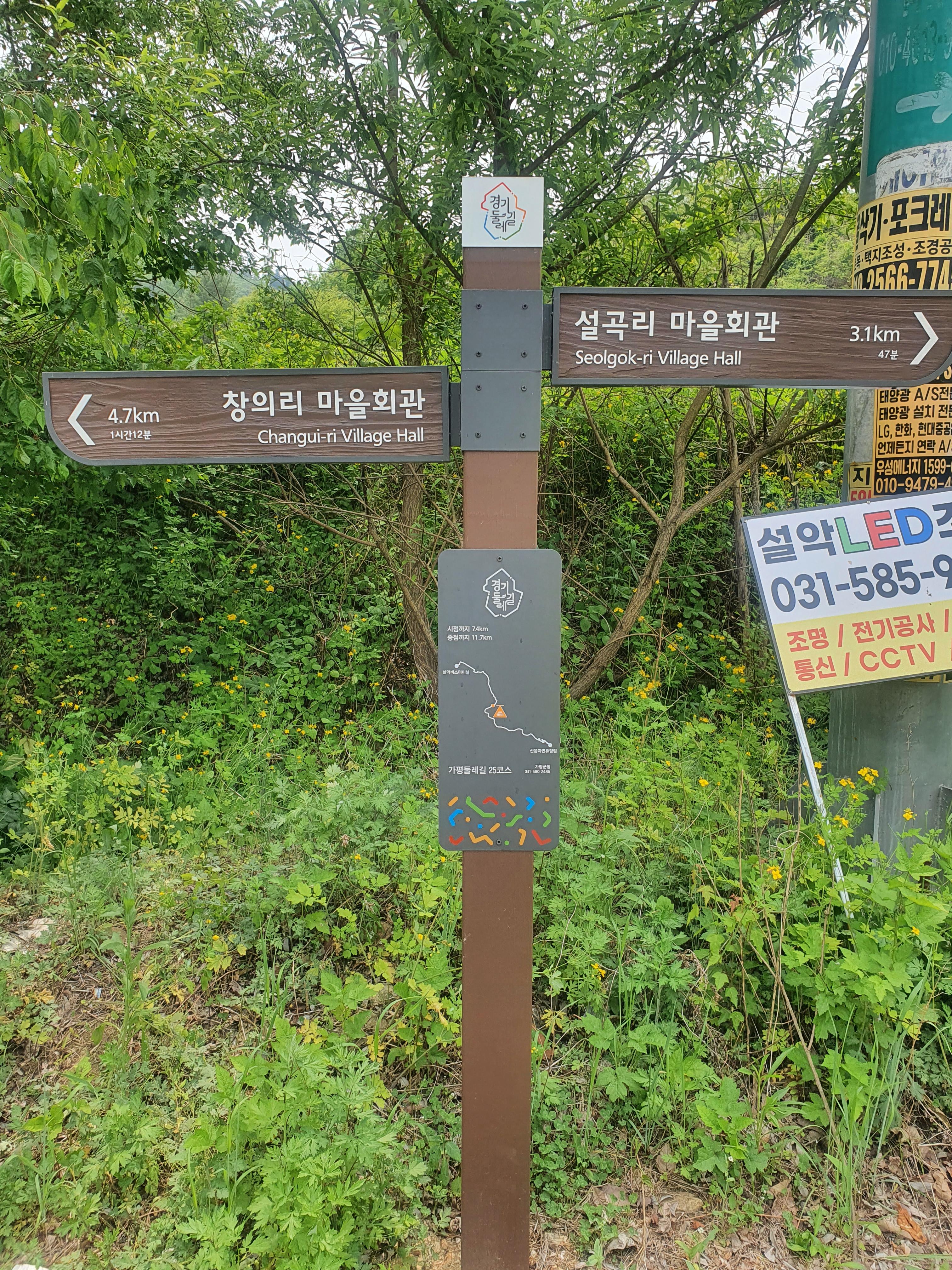 ▶ 주요 코스 : 가평 설악터미널 ~ 신천2리 노인회관 ~ 창말 입구 ~ 위곡3리 마을회관 ~ 마치고개 ~ 설곡리 마을회관 ~ 양평산음자연휴양림