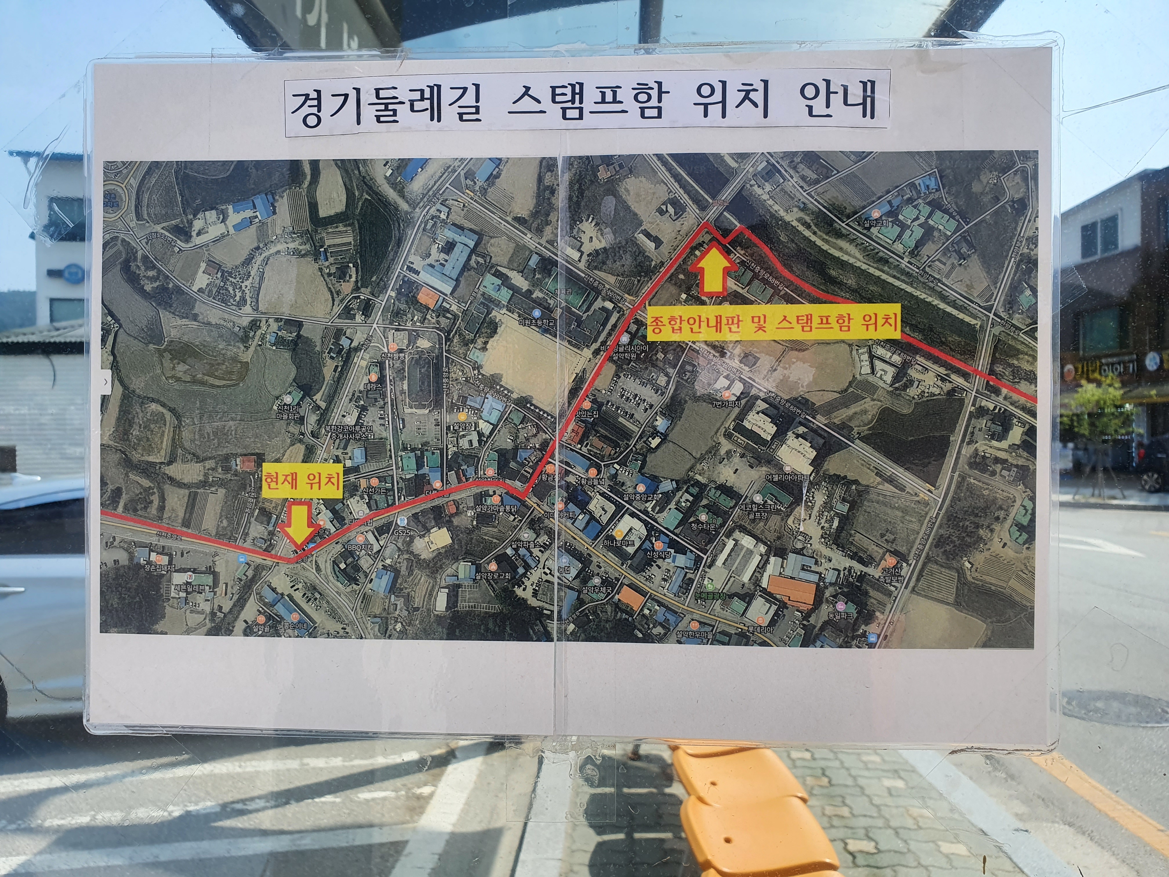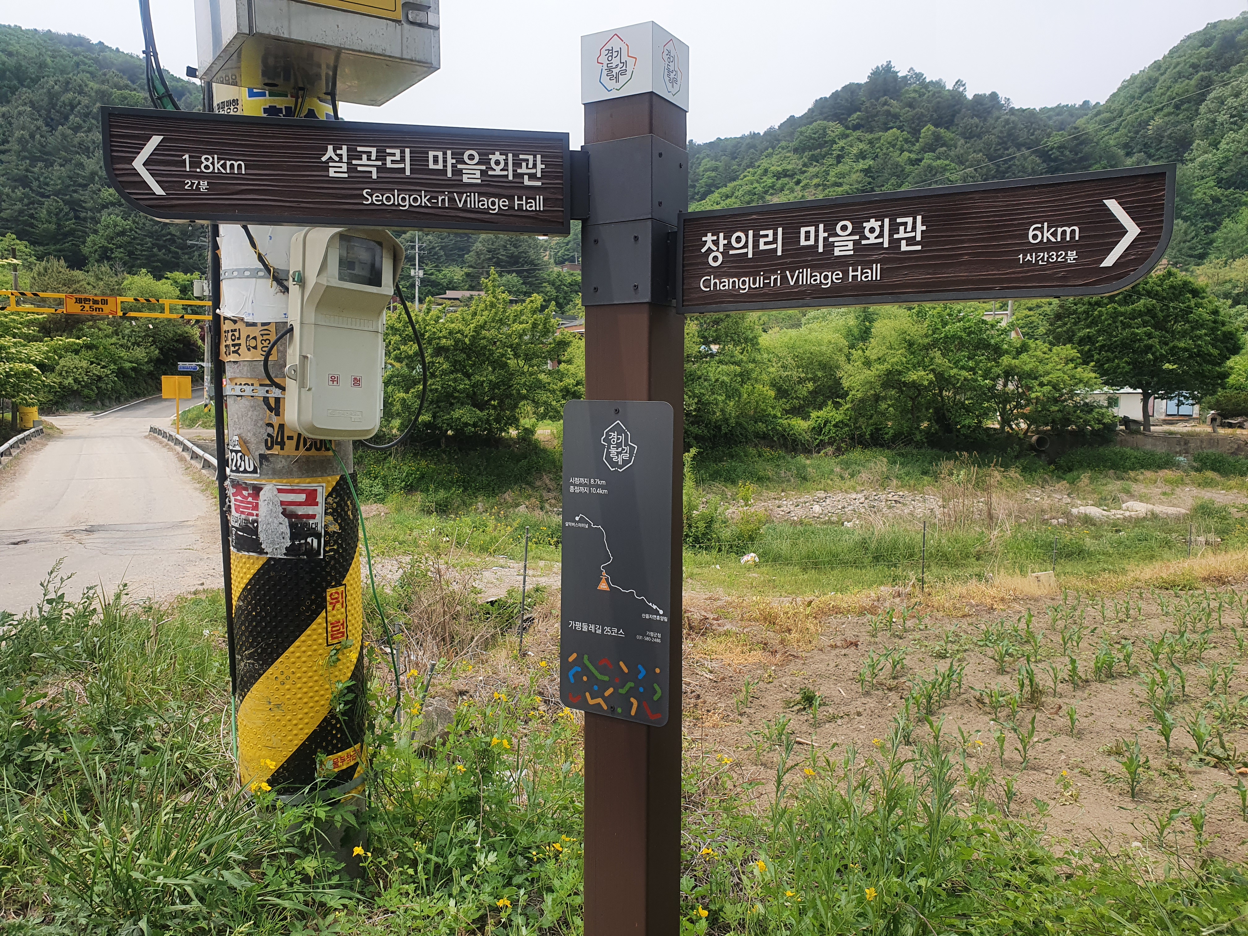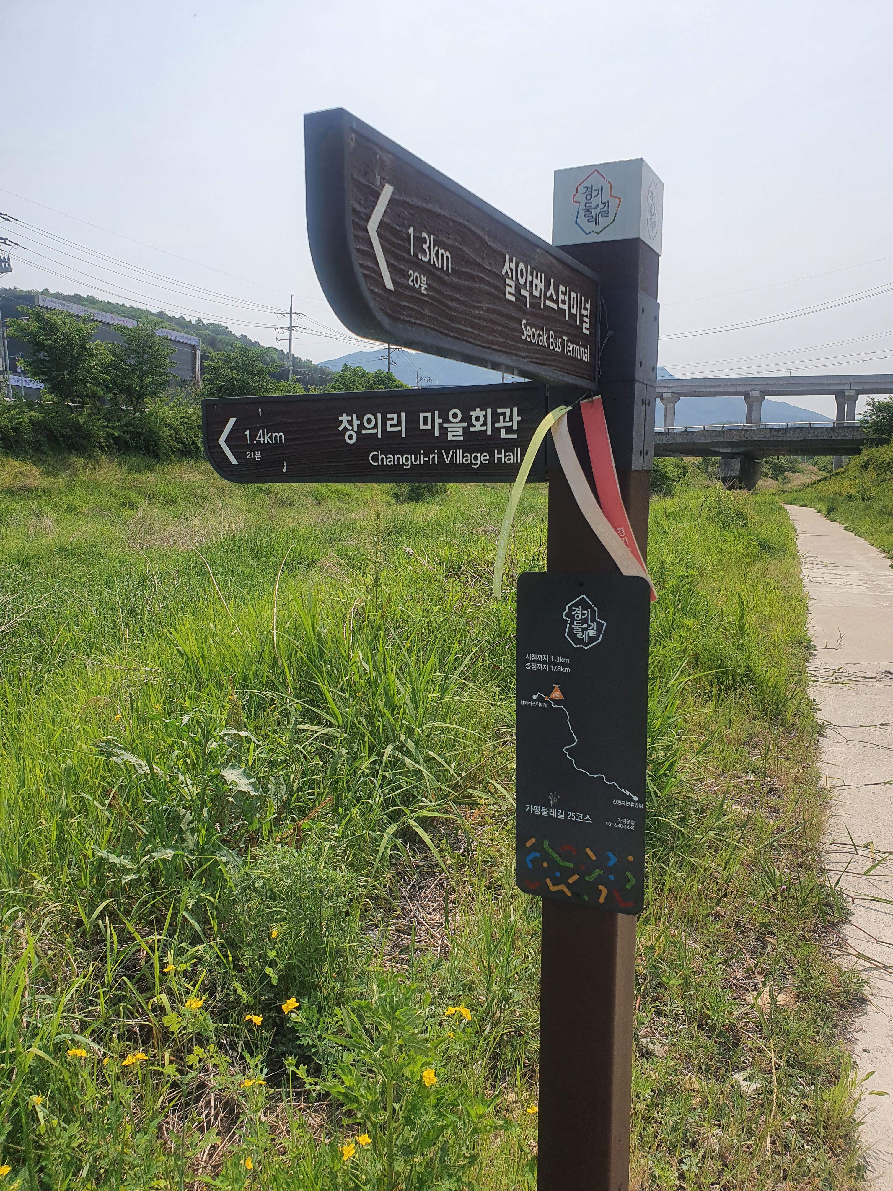 ▶ 25코스 안내판 및 스탬프는 시작위치에 없고 약 0.5km 이동해서 설악교 우측에 있슴. 사진 참고.