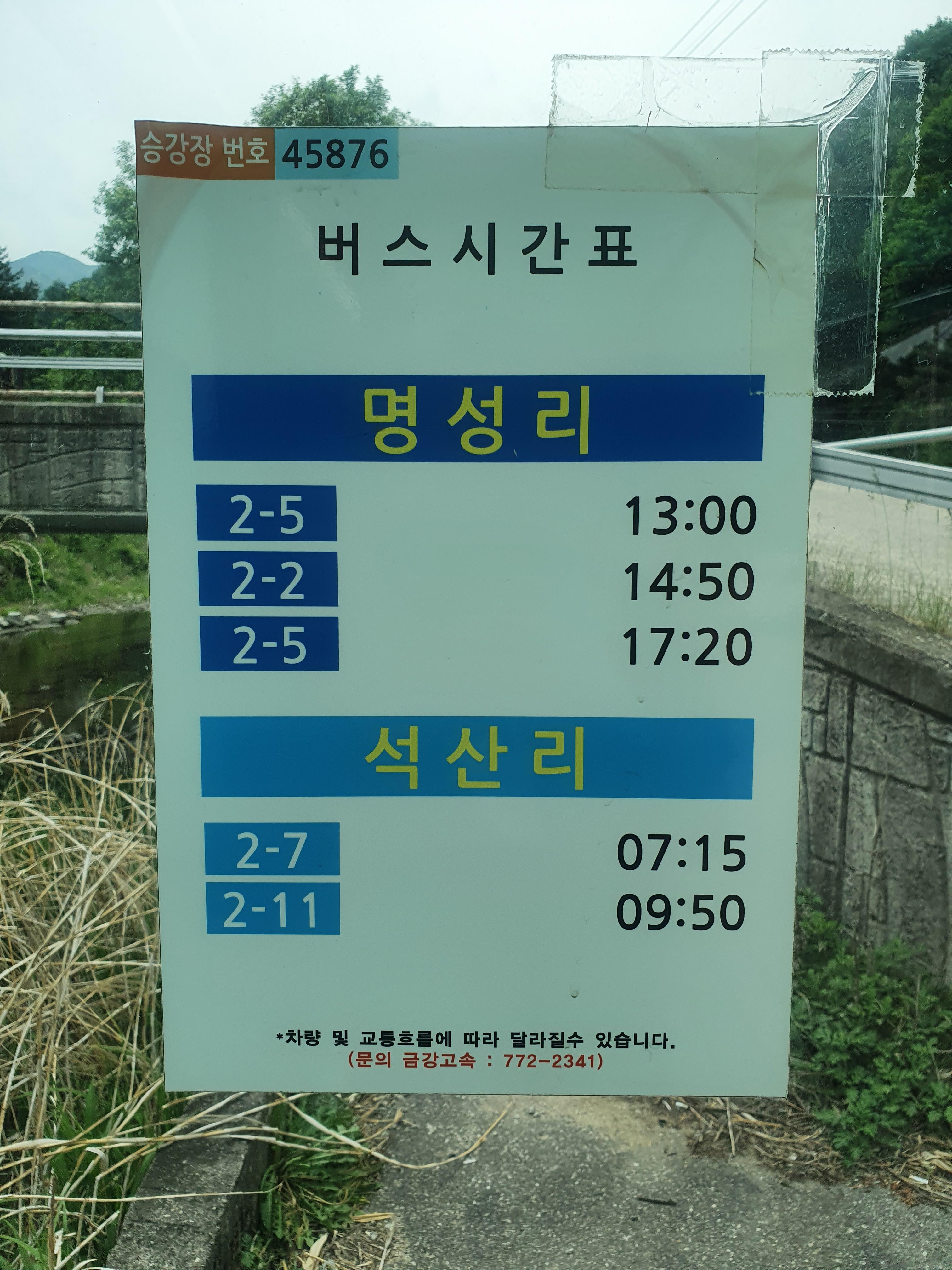 2-2번 14:50 놓쳐 지나가던 분들의 도움으로 석산리까지 이동해 탑승.