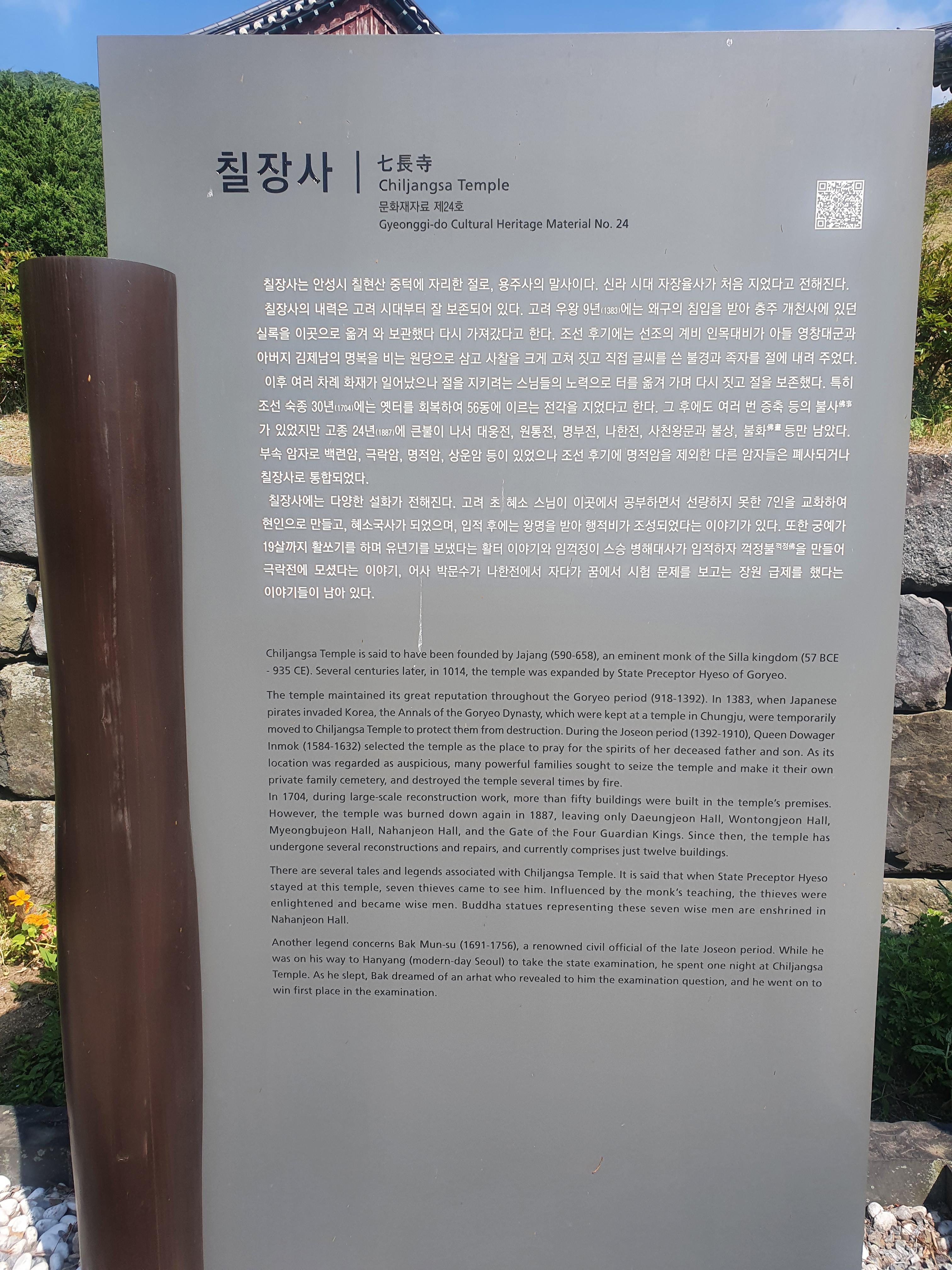 - 갈때 : 버스 이용 시간 2시간 29분 (안양시외버스 승차 07시17분 ~ 칠장사 하차 09시46분)
