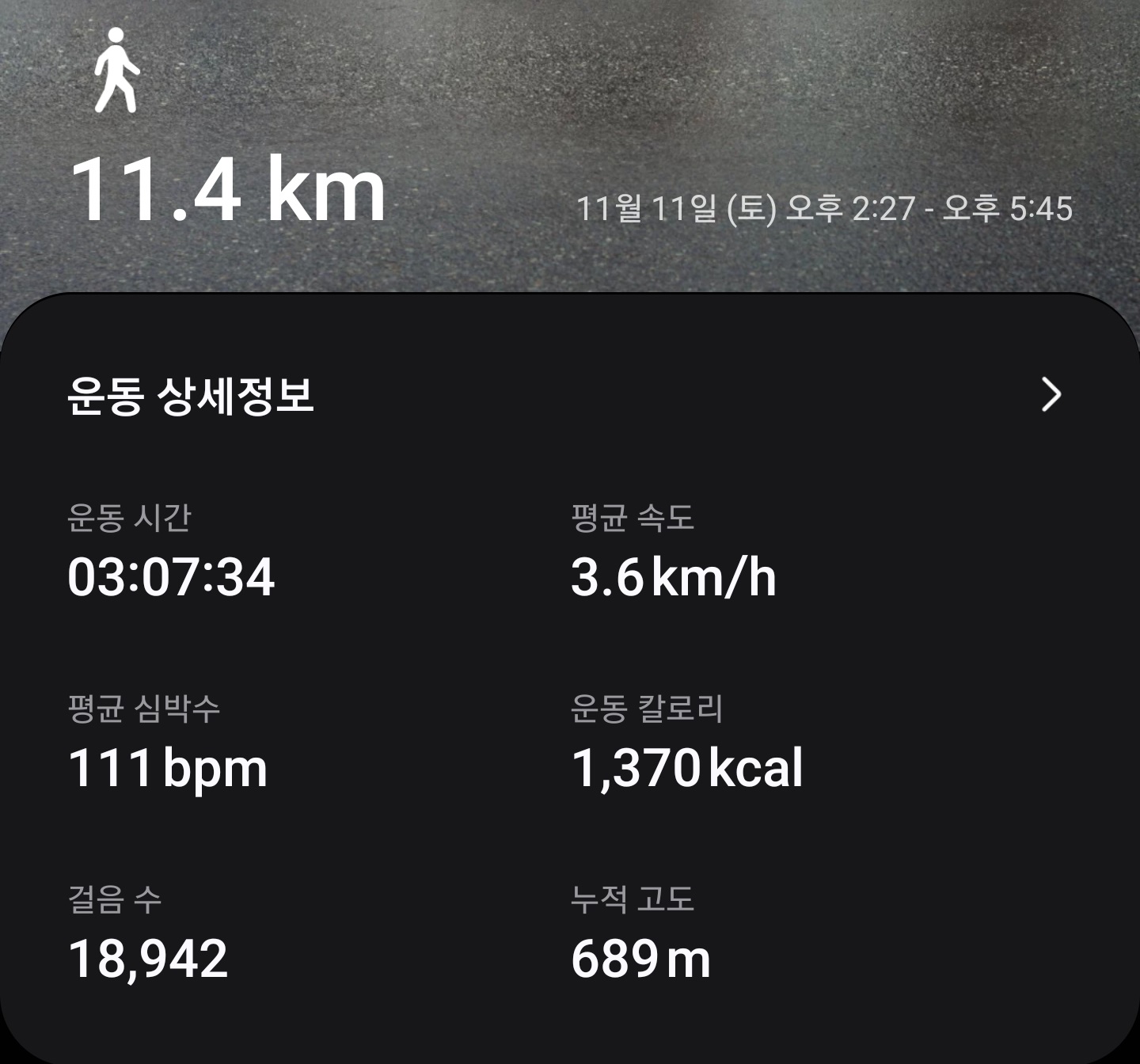 ▶ 실제 총거리 : 11.4km (갤럭시 워치 기록)