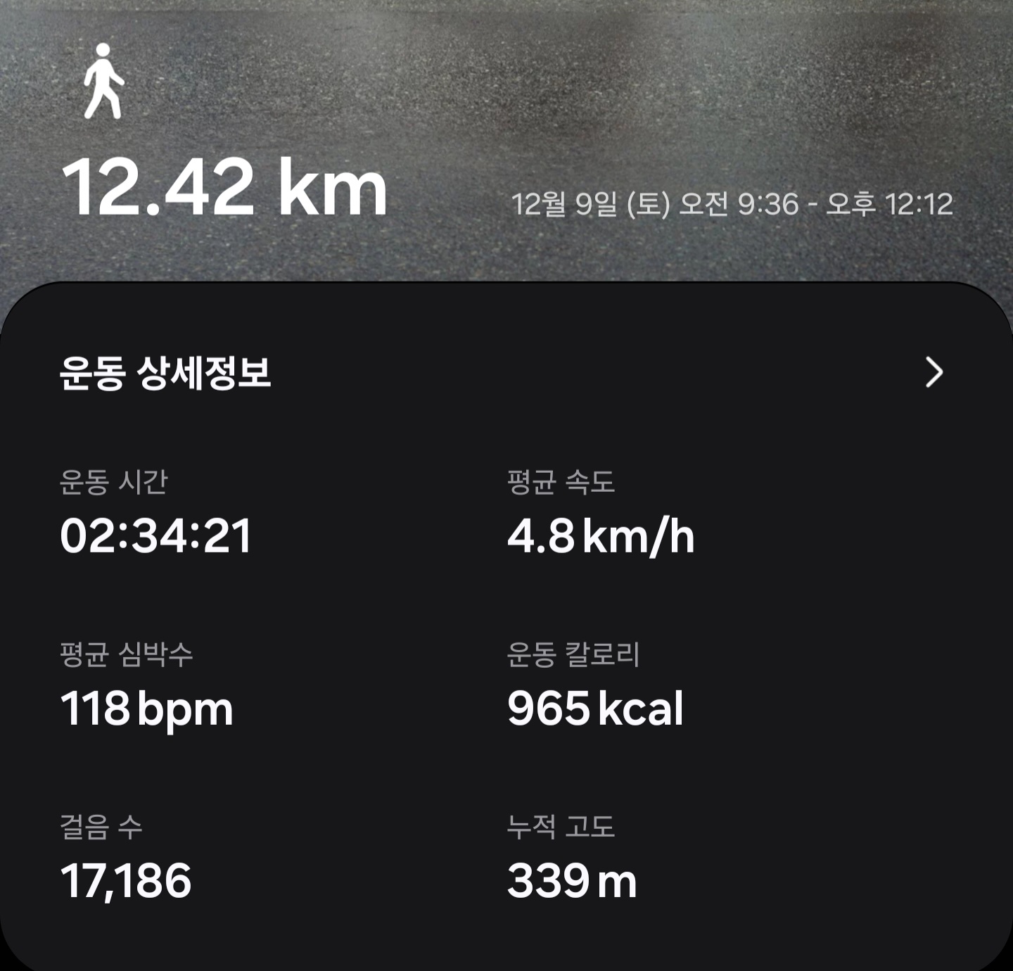 ▶ 실제 총거리 : 12.42km (갤럭시 워치 기록)