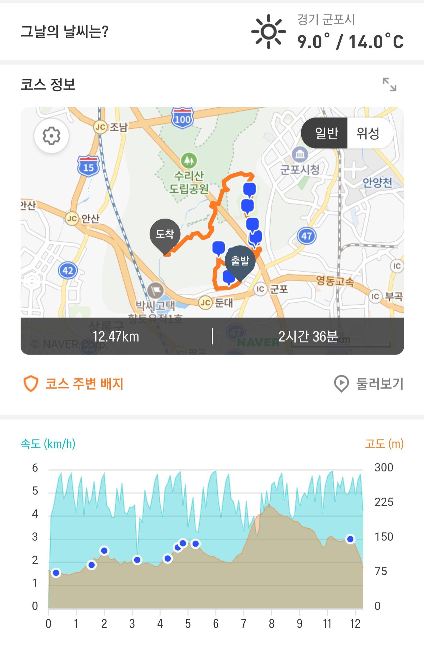 ▶ 트랭글 어플 코스는 군포시 홈페이지 코스와 많이 틀림.