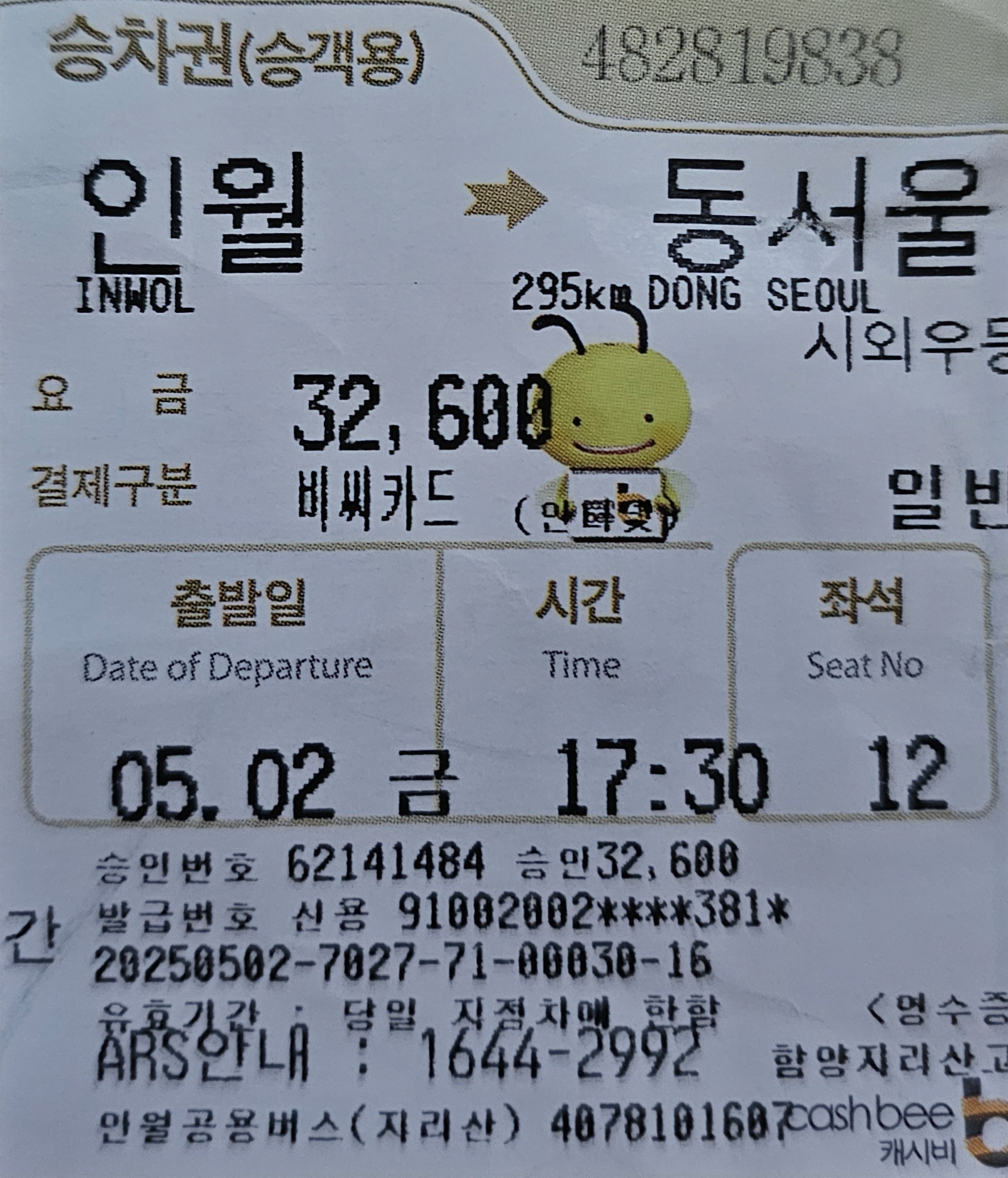 (5월 1일 안양(집)에서 21시쯤 출발. 5월 2일 집에는 22시 50분쯤 도착)