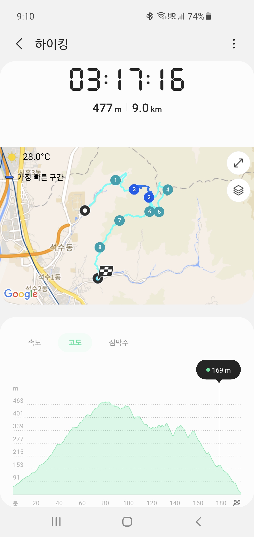 - 위 경로에서 삼성산 통신타워까지만 올라가는 쉬운길. 내려올때도 포장도로 이용해도 됨.