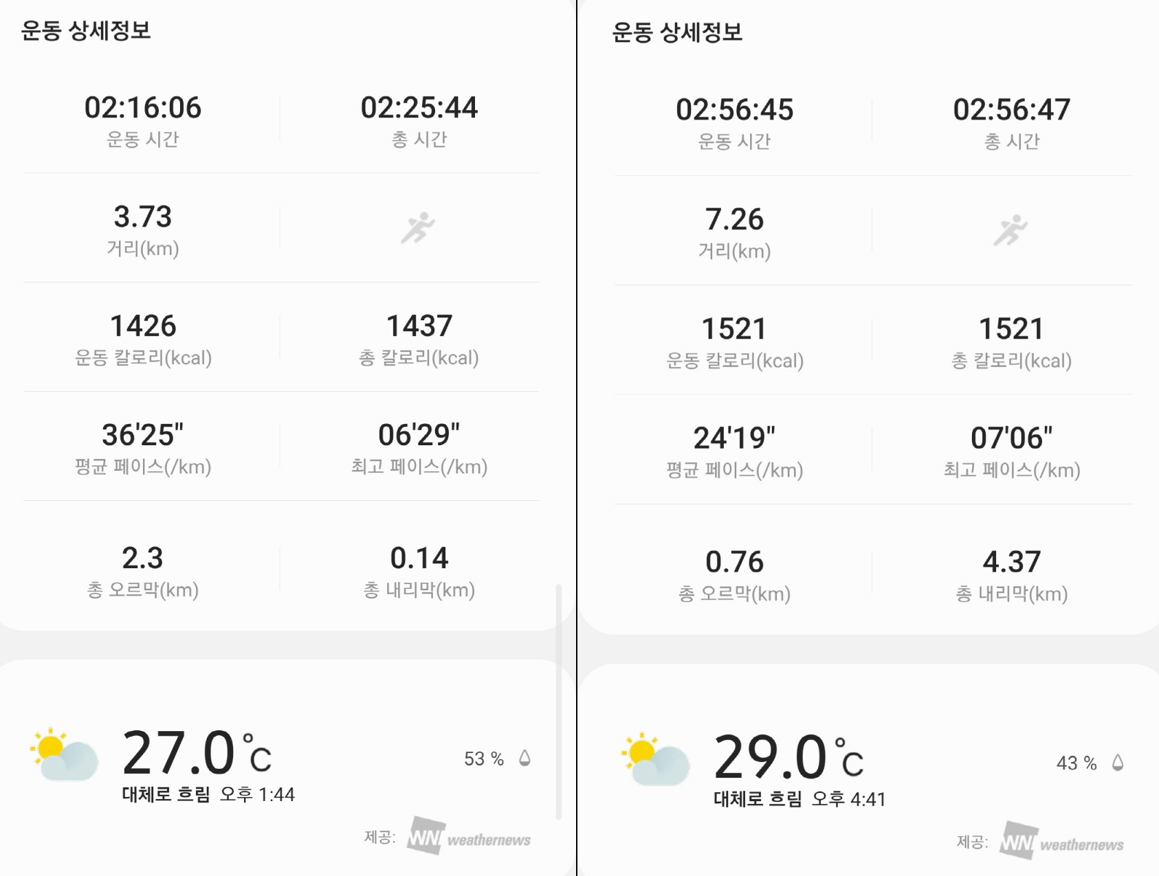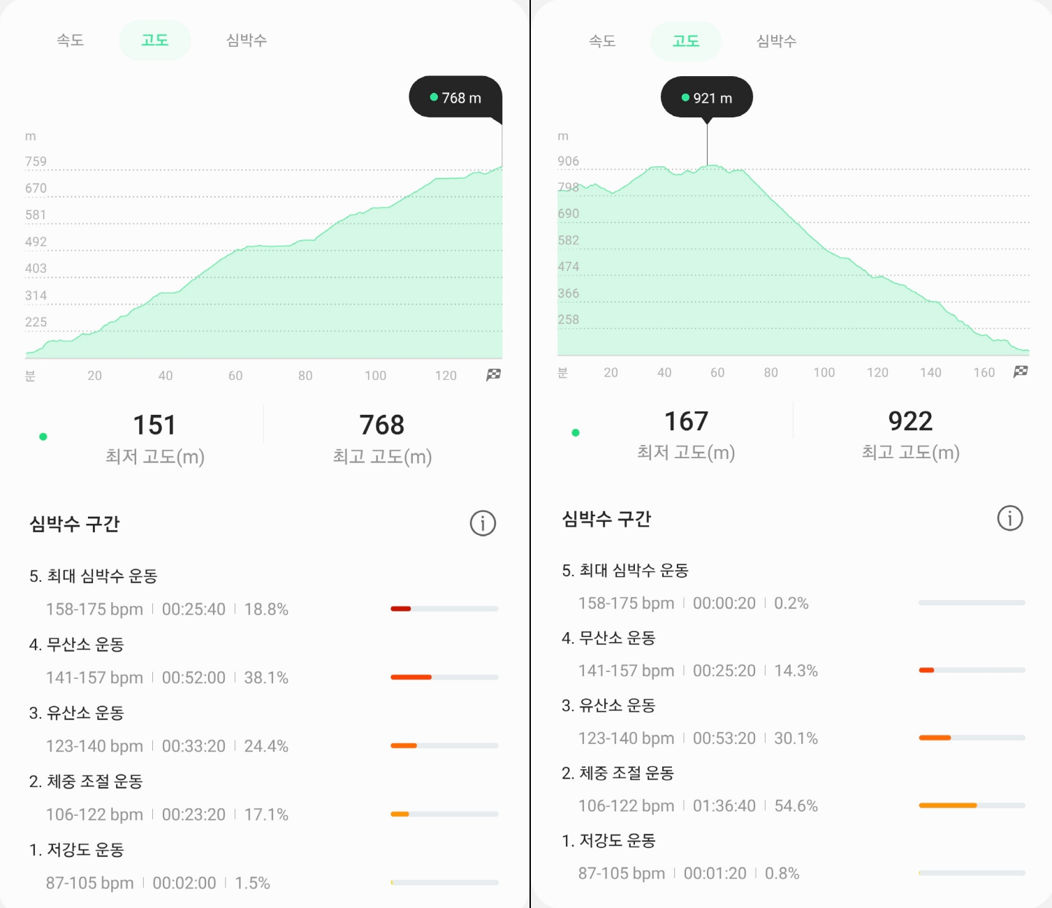 * 갤럭시 액티브2 잘 못 눌러 성봉에서 측정 종료되어 성봉부터 다시 측정함.
