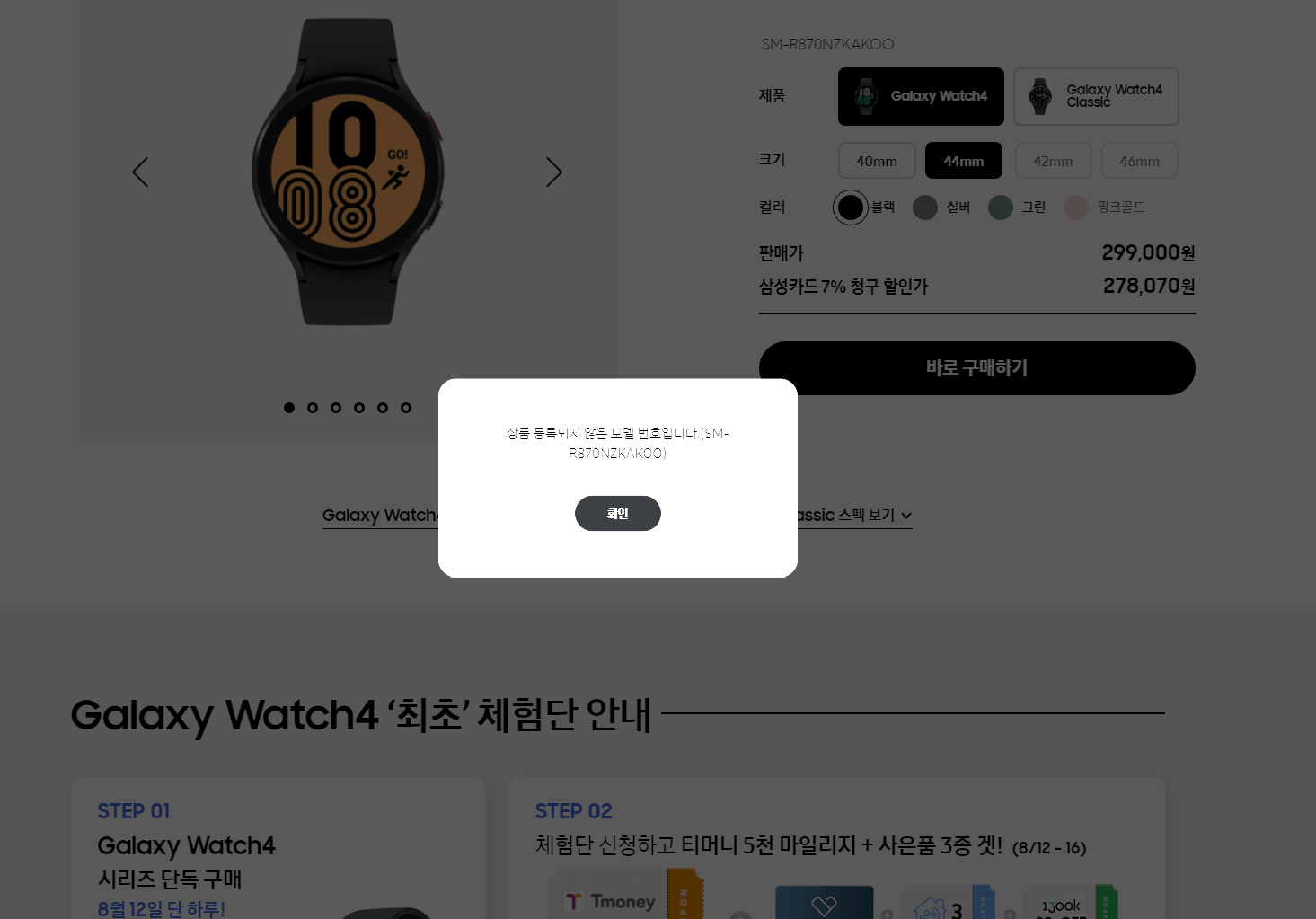 44mm 블랙 색상 구매하려고 했지만 실패.