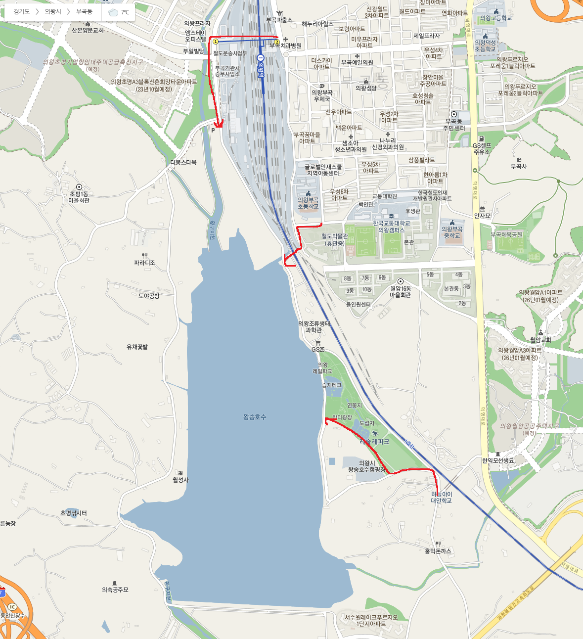 의왕역(구 부곡역) 남쪽에 있는 호수(?)라고 합니다.