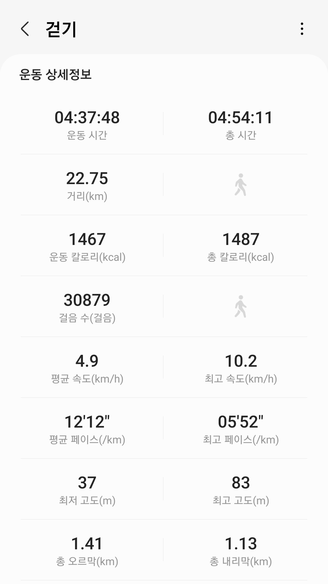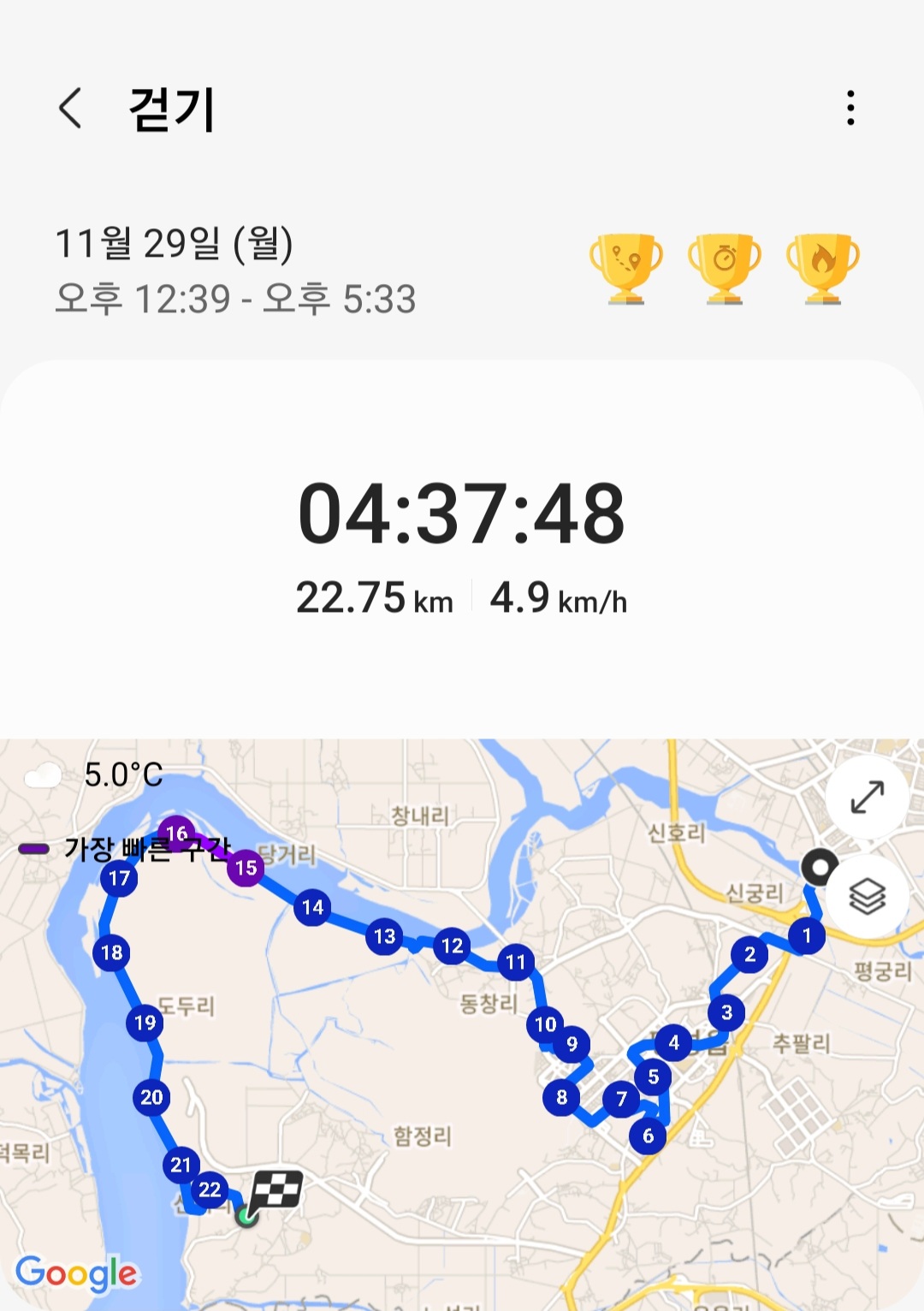 ▶ 실제 총거리 : 22.75km (갤럭시 워치4 기록)