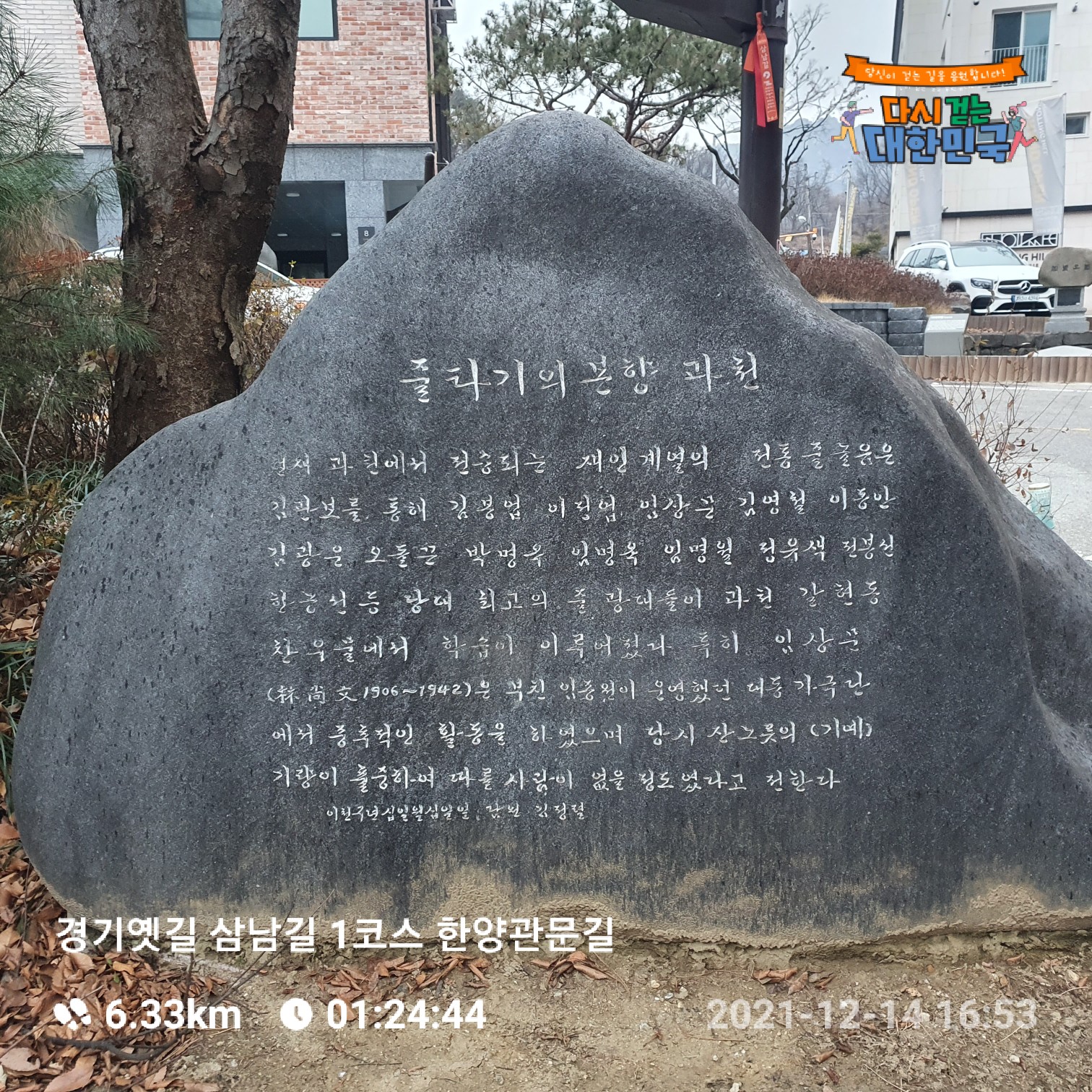 ▶ 주요 코스 : 남태령표석 ~ 온온사 ~ 과천향교 ~ 가자우물(찬우물) ~ 인덕원 옛터