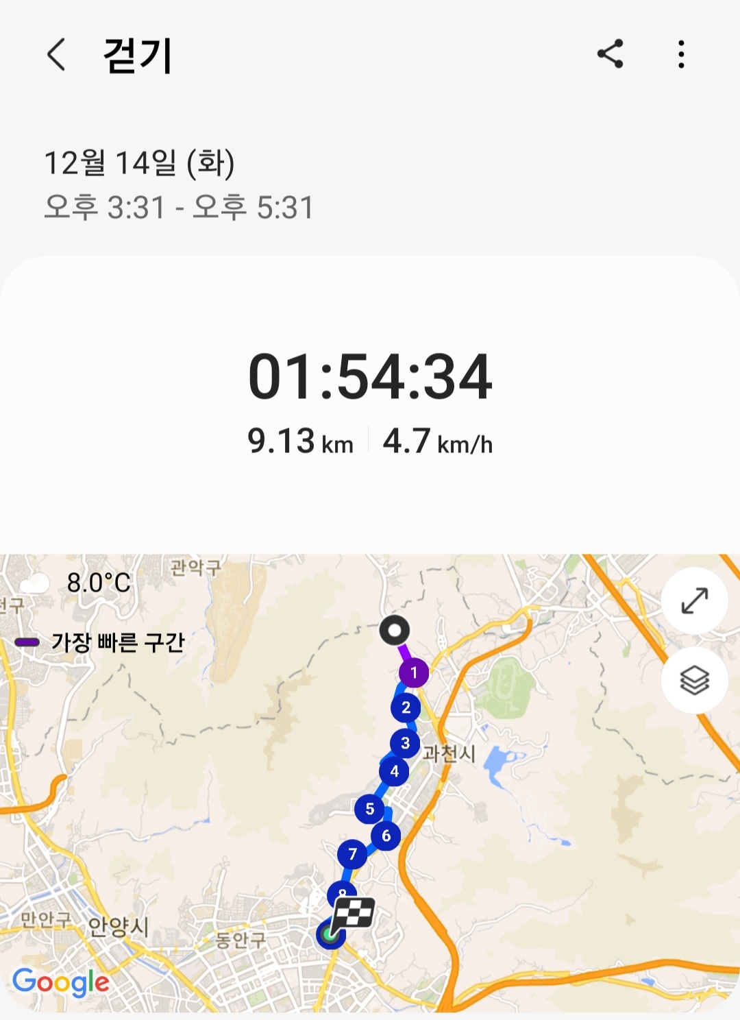 ▶ 실제 총거리 : 9.13km (갤럭시 워치 4 기록)