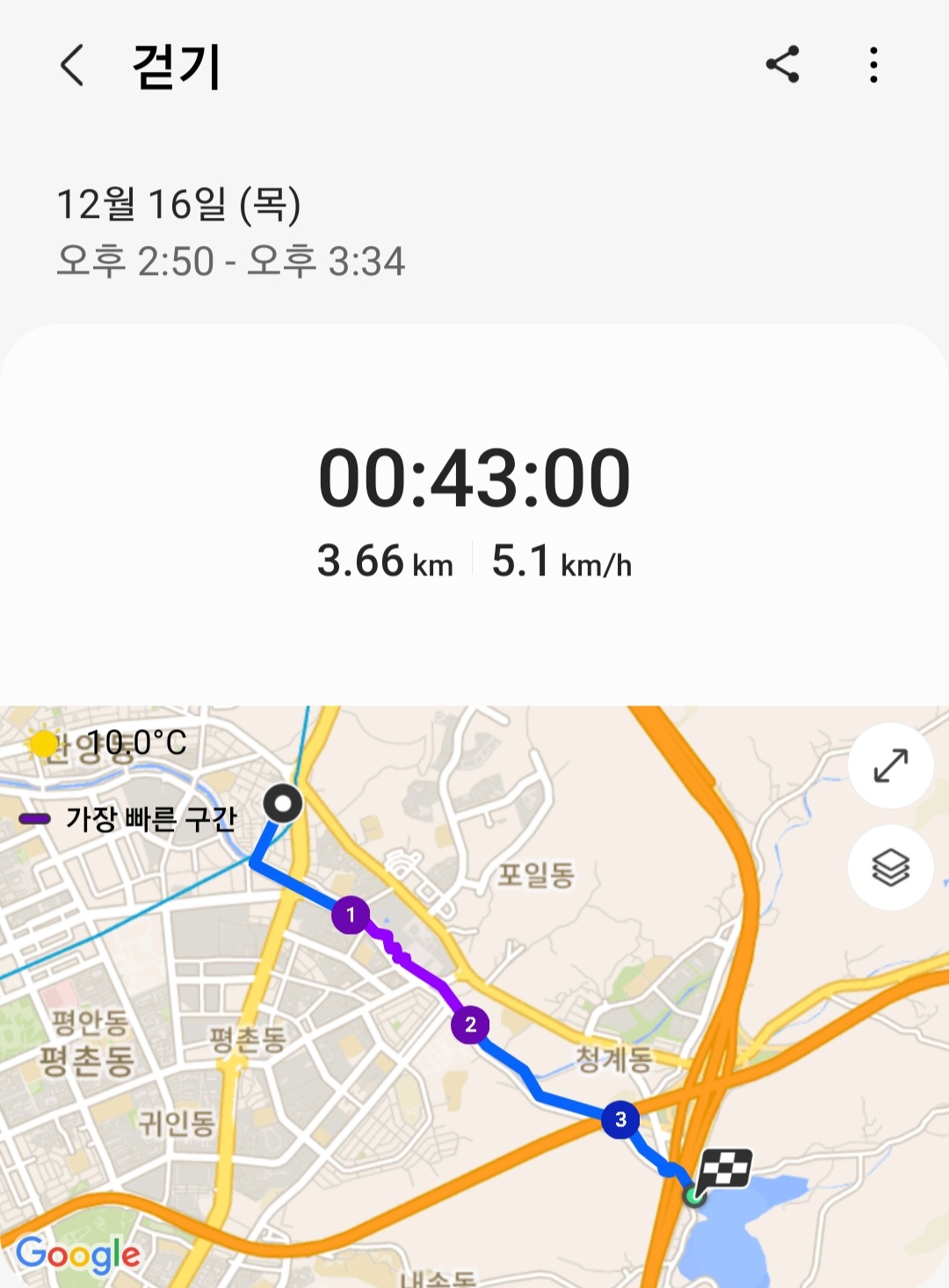 ▶ 실제 총거리 : 3.66km (갤럭시 워치4 기록)