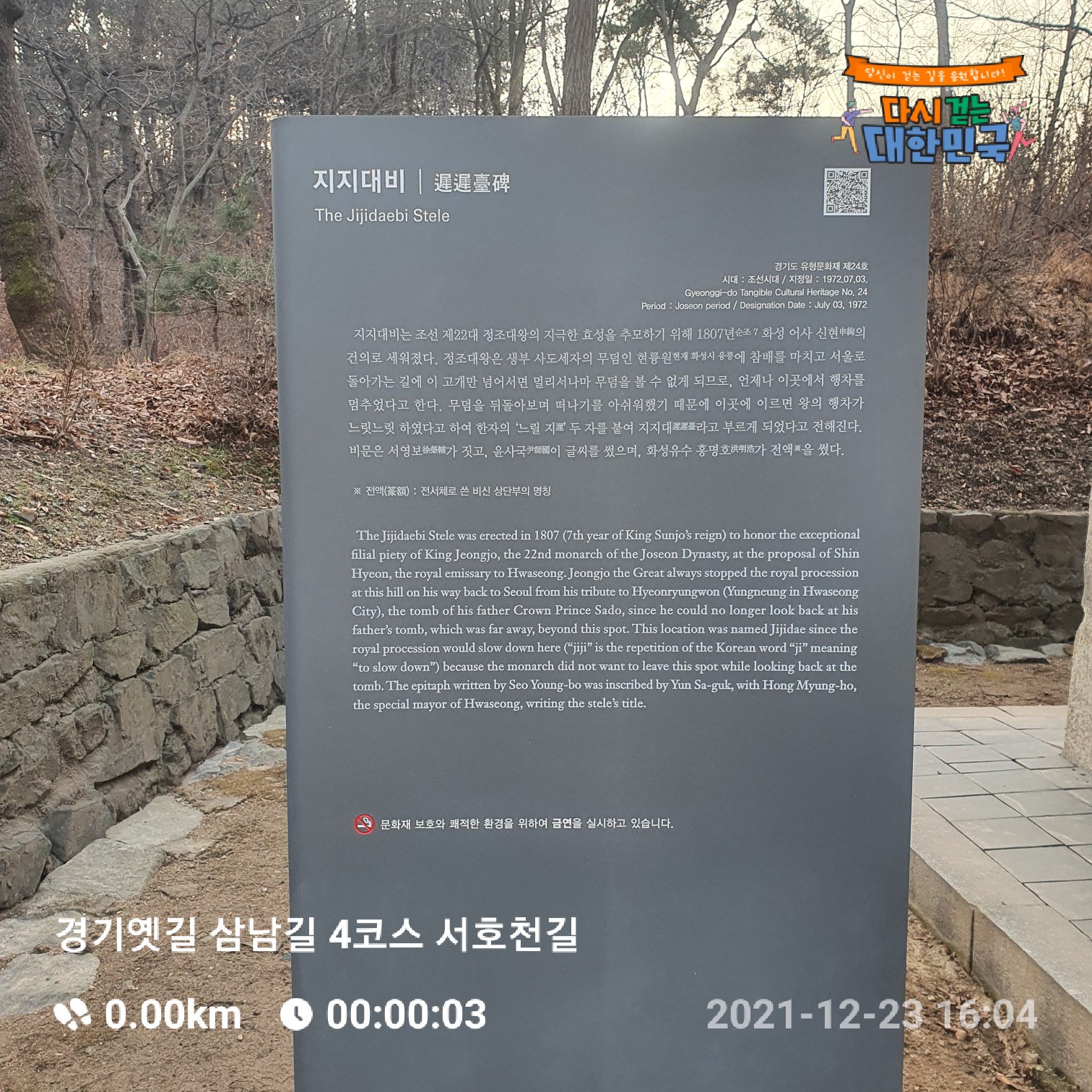 ▶ 주요 코스 : 지지대비 ~ 지지대쉼터 ~ 해우재 ~ 이목2교 ~ 국립원예특작과학원 ~ 여기산앞 ~ 서호공원 입구