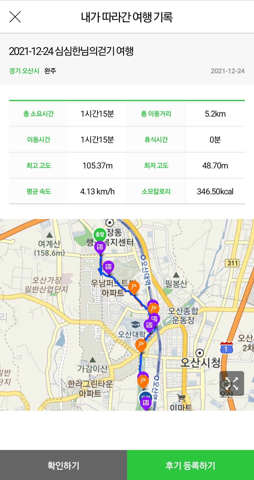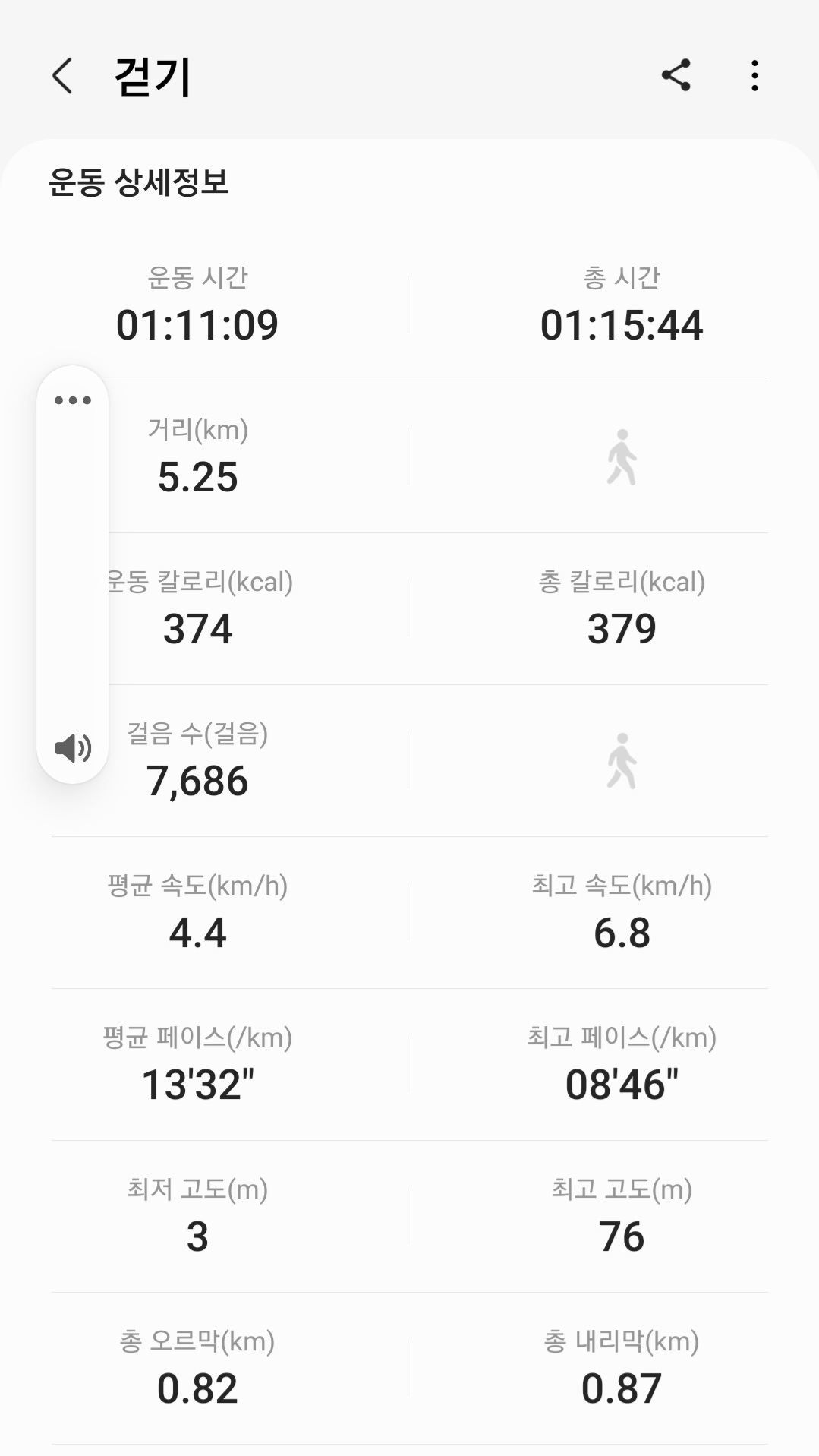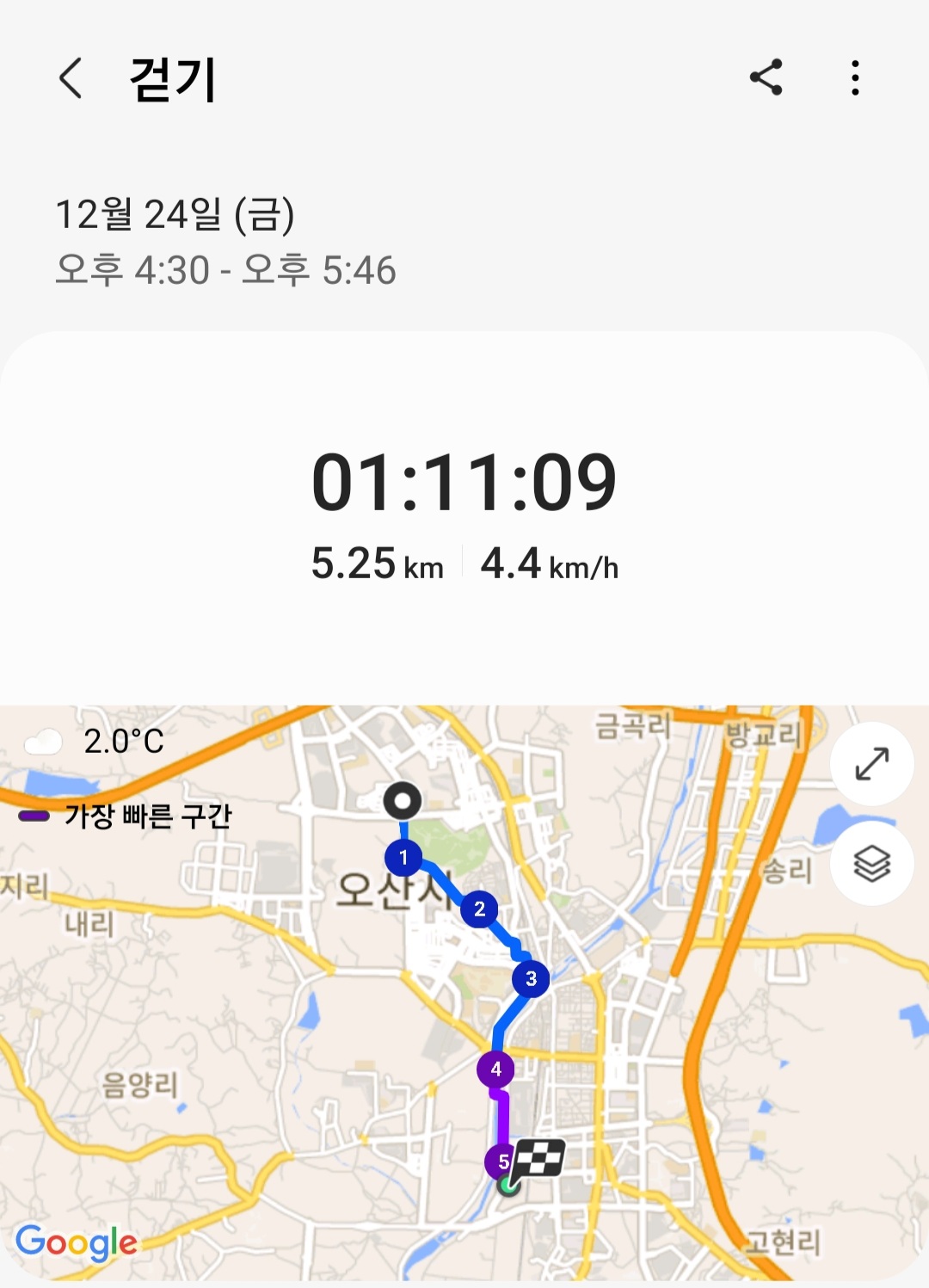 ▶ 실제 총거리 : 5.25km (갤럭시 워치4 기록)