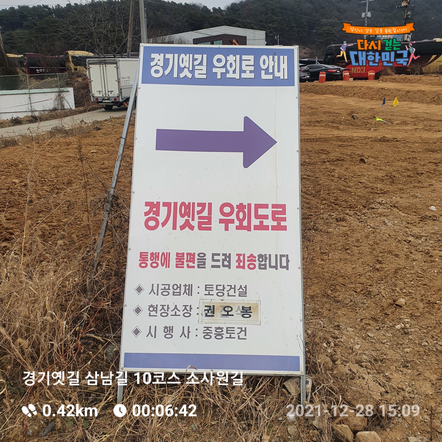 ▶ 시작위치에서 팔용당지까지 공사로 인해 우회해야함. 건설사에서 제공된 우회표지판 참조.
