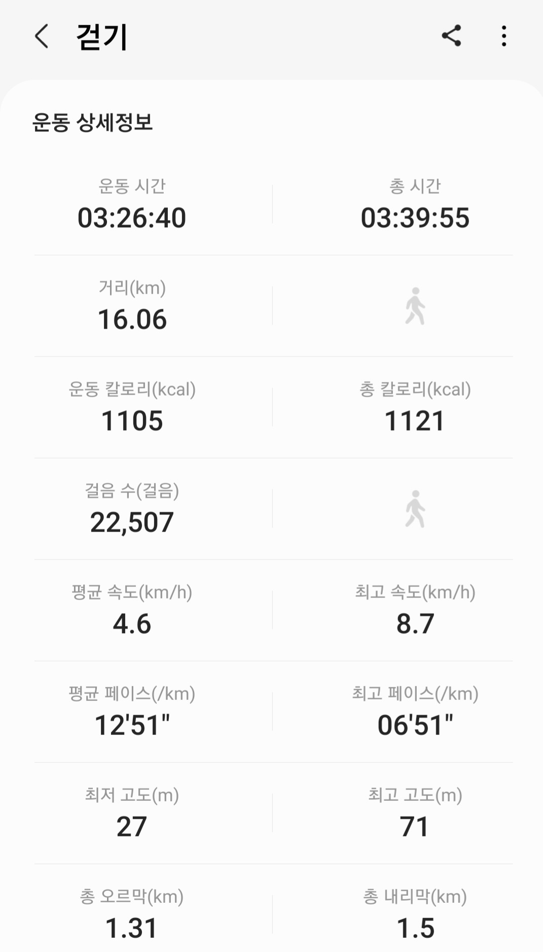 ▶ 소요 거리 : 16.16km (갤럭시 워치4 기록)