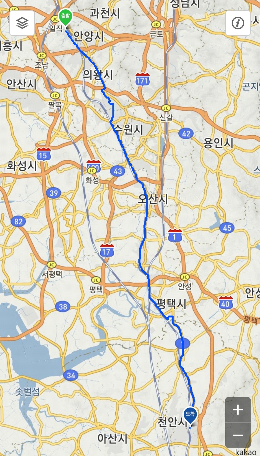 ▶ 경부선 코스 위주로 일반버스 이용. 두루누비 어플 자전거 타기로 경로 기록.